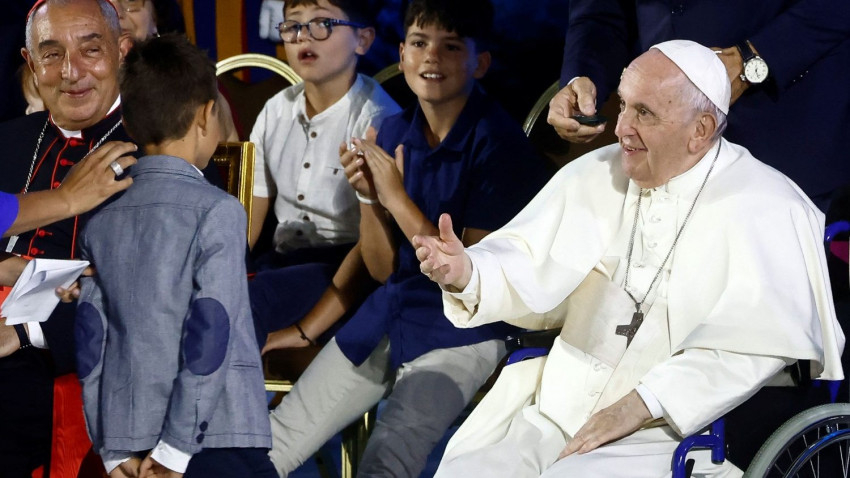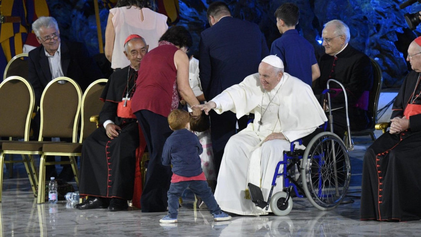 Különösen mi, megkereszteltek kaptunk arra meghívást, hogy üzenet legyünk, „amelyet a Szentlélek Jézus Krisztus gazdagságából merít és ajándékoz az ő népének” (Gaudete et exsultate apostoli buzdítás, 21). Ezért azt javaslom, tegyétek fel magatoknak ezt a kérdést: mi az az üzenet, amelyet az Úr a mi életünkkel akar elmondani azoknak az embereknek, akikkel találkozunk? Milyen „újabb lépést” kér ma a családunktól?