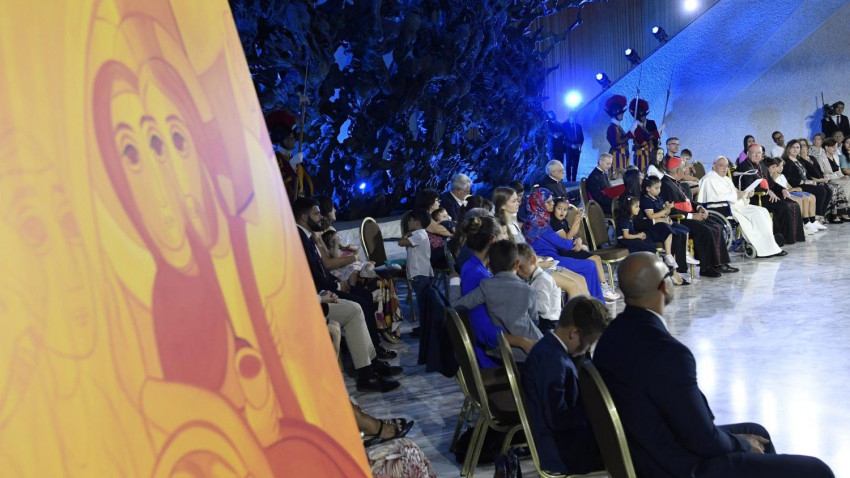 Iryna és tizenhét éves lánya, Sofia a háború kitörése után két héttel menekült el Kijevből, busszal utaztak Rómába, már két hónapja ott élnek. Az édesanya elmondta, mennyire hálás Istennek, amiért olyan sok jó embert küldött az útjukba, akik segítették őket és reményt adtak nekik. Pietro és Erika, egy hatgyermekes fiatal házaspár fogadta be őket a házuk mellett lévő lakásukba. Pietro elmondta, nem szeretne gratulációkat ezért, ők azok, akik hálásak Istennek, amiért ingyenesen ajándékozhatják azt a szeretet, amit ingyen kaptak az Úrtól és az Egyháztól. „Befogadni a másik embert, aki szenved, azt jelenti, Krisztust fogadni be” – tette hozzá. Erika elmesélte, először meglepte a kérés, hogy fogadjanak be egy családot, de most már úgy érzi, áldást jelent ez az egész családjuknak.