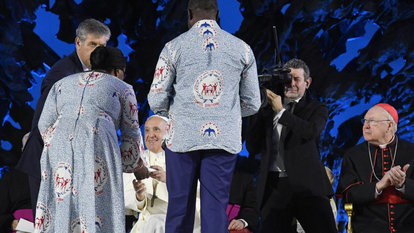 Sofia ötéves, Lilia és Miral négy. Másfél éve mindhárman árvák, mert szeretett édesapjukat, Luca Attanasiót, Olaszországnak a Kongói Demokratikus Köztársaságba delegált nagykövetét meggyilkolták, amikor az afrikai országban az ENSZ egyik gyermekélelmezési központjába utazott. Özvegye, Zakia Seddiki elmondta Ferenc pápának, hogy ma is maga mellett érzi férjét mindennap, érzi a közelségét „megsebzett családjában”. Zakia muszlim, de a családban soha nem jelentettek problémát a vallási különbségek: „sőt, gazdagabbá tett minket, a családunkat az igaz szeretetre, tiszteletre, szolidaritásra és a kultúráink közti párbeszédre építettük”. Megtanulták, milyen fontos meghallgatni egymást, és nem ítélkezni, hiszen mindkettőjük szent könyvében azt kéri Isten, hogy szeressék embertársaikat, ne tegyenek rosszat senkivel és tiszteljék a másikat. Mindkét könyv ott volt a polcukon, bárhol is éltek, gyermekeikkel megünnepelték a karácsonyt és a ramadánt is, amely ünnepek emlékeztetnek arra a sok gyermekre is, akiknek nem jut elég élelem és víz. Elmondta, mennyire hiányzik a férje, aki mindig megnevetette a lányokat, mesélt nekik, de biztos benne, hogy a gyerekeik éppen olyan erősek és mosolygósak lesznek, mint édesapjuk volt, és hiába igazságtalan az élet, nem engedik át magukat a vigasztalanságnak. Azt kívánta minden családnak, legyenek mindig bizonyosak abban, Isten soha nem hagy minket egyedül.
