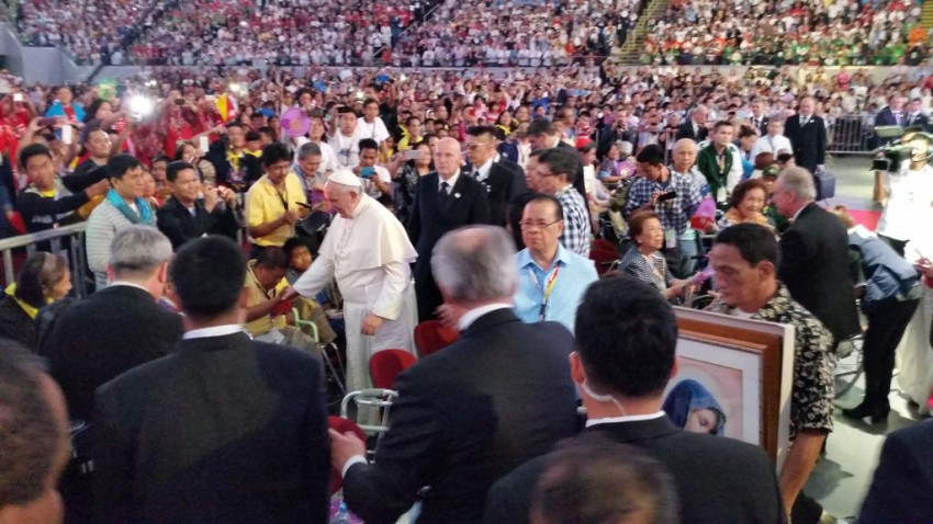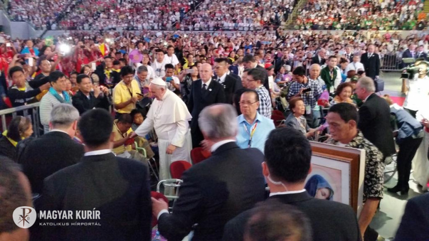 Végül a pápa kérte a családokat, hogy ne feledkezzenek meg az alvó Jézusról és az alvó Józsefről. Gyakran imádkozzanak és vigyék el imáik gyümölcseit a világba, hogy mindenki megismerhesse Jézus Krisztust és irgalmas szeretetét. Kérlek, aludjatok értem is és imádkozzatok is értem, mert igazán szükségem van rá, és mindig függök tőle! Nagyon köszönöm – zárta beszédét a pápa a manilai családtalálkozón.