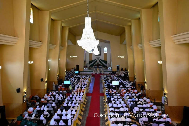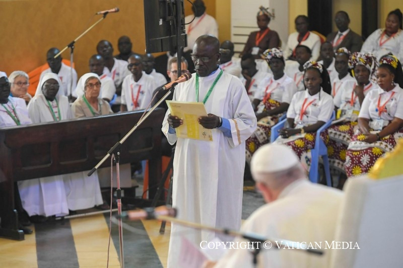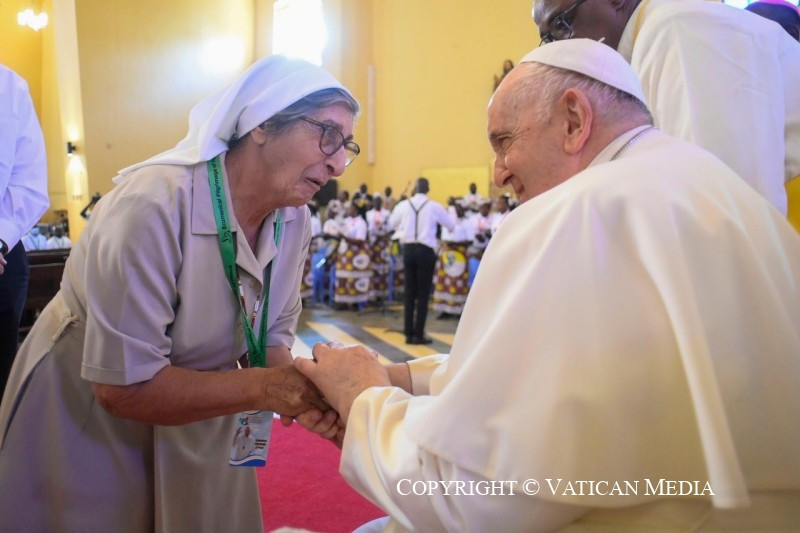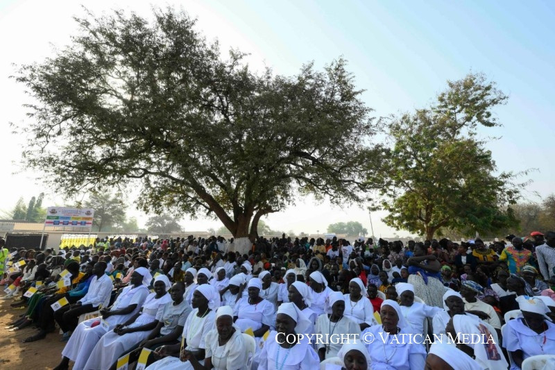 Nagyon sok pap, szerzetes vált erőszak és merénylet áldozatává – ahogyan Regina nővér mondta nővértársairól. Életüket áldozták az evangélium ügyéért, és a testvéreikhez való közelségük csodálatos tanúságtétel, amelyet ránk hagynak, és amely arra hív, hogy folytassuk útjukat. Emlékezhetünk Szent Daniele Combonira, aki misszionárius testvéreivel nagy evangelizációs munkát végzett ezen a földön: ő azt mondta, hogy a misszionáriusnak késznek kell lennie mindent megtenni Krisztusért és az evangéliumért, és hogy olyan bátor és nagylelkű emberekre van szükség, akik képesek szenvedni és meghalni Afrikáért.