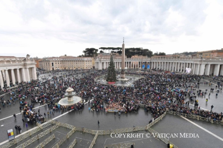 Kérdezzük hát meg magunktól: ezekben a napokban megálltunk-e, hogy Jézust imádva imádkozzunk, csináltunk-e helyet Jézusnak a csendben, imádkozva a jászol előtt? Töltöttünk-e időt a gyerekekkel, beszélgettünk-e és játszottunk-e velük? És végül, képesek vagyunk-e a világ problémáit a gyermekek szemével látni?