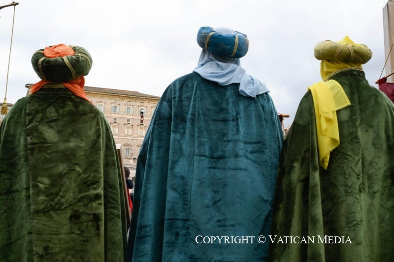 Ma az Úr epifániáját, vagyis a bölcsek által megszemélyesített összes nép előtti kinyilvánulását, megjelenését ünnepeljük (vö. Mt 2,1–12). Ők olyan bölcs keresők, akik hagyták, hogy egy csillag felbukkanása kérdéseket vessen fel bennük, és akik útnak indulnak, majd Betlehembe érkeznek. Ott megtalálják Jézust „Máriával, az ő anyjával”, leborulnak előtte, s „aranyat, tömjént és mirhát” adnak neki (Mt 2,11).