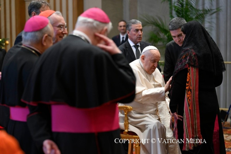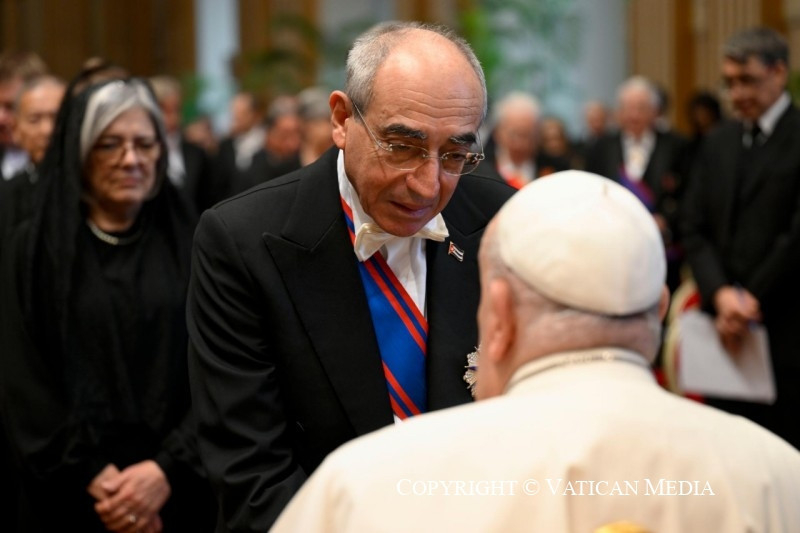 A Szentszékhez akkreditált 184 nagykövetet és a diplomatákat az Áldások termében fogadta a pápa, aki megfázása miatt Filippo Ciampanelli atyát, a Keleti Egyházak Dikasztériumának altitkárát kérte meg beszéde felolvasására. Magyar részről jelen volt az audiencián Habsburg-Lotharingiai Eduárd szentszéki nagykövet, Tóth Krisztina vatikáni levéltári delegátus, Törő András atya, a szentszéki nagykövetség egyházi tanácsosa és a Pápai Magyar Intézet rektora, valamint Buda Zolta, a szentszéki nagykövetség diplomatája.