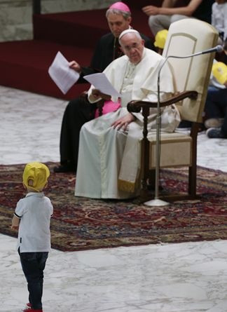A VI. Pál-terem hangulata egyre jobban felforrósodott, amikor sorban jöttek a kérdéseikkel azok a gyerekek, akik nehéz helyzetben élnek. Egy kerekes székes fiú elmondta, hogy szeptemberben egy olasz karitatív szervezettel Lourdes-ba utazik, egy másik a kórházban fekvő barátja helyett kérdezett, egy harmadik, aki a kiskorúak börtönéből érkezett, azt kérdezte: vajon hozhat-e megoldást a börtöncella?