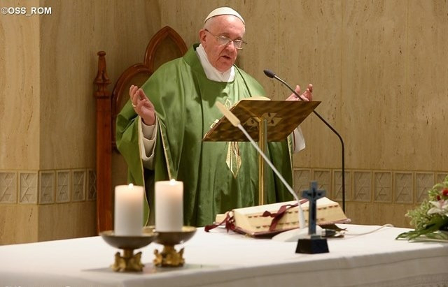 Majd emlékeztetett Sámuel anyjára, aki az Úr kegyelmét kérte gyermekáldásért, és imája közben alig láthatóan mozgott az ajka: A pap ott volt, látta őt és meg volt győződve, hogy részeg. Csak motyogott, mert nem volt képes beszélni… Egy gyermeket kért. Így imádkozunk az Úr előtt. És az imát, mivel tudjuk, hogy Ő jó, és tud mindent rólunk és szükségleteinkről, e szóval kezdjük: „Atyám”, ami persze egy emberi szó, ami életet ad, de az imában csak a Szentlélek erejével mondhatjuk. Így kezdjük az imát egyszerűen, nyitott szívvel, tudva, hogy az Úr jelen van, és a Szentlélek erejével mondjuk el.