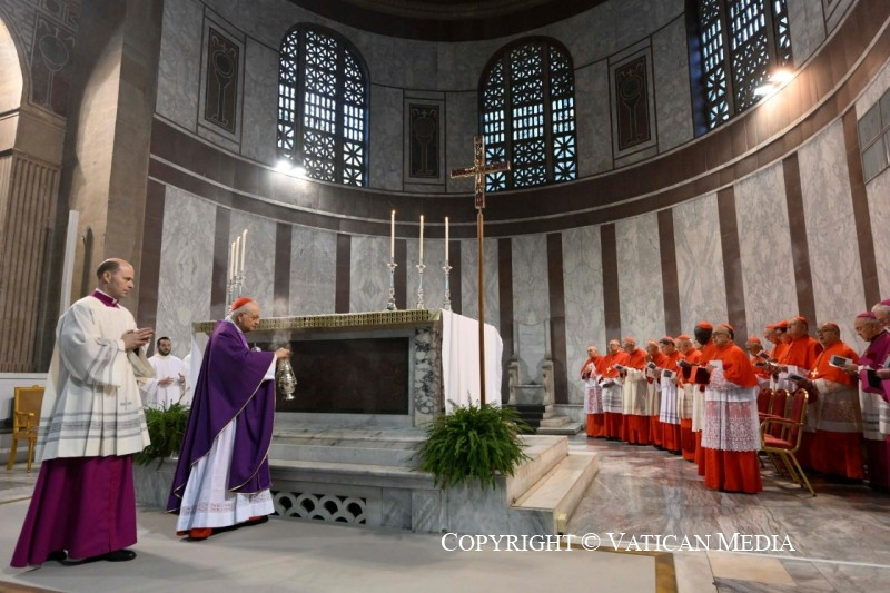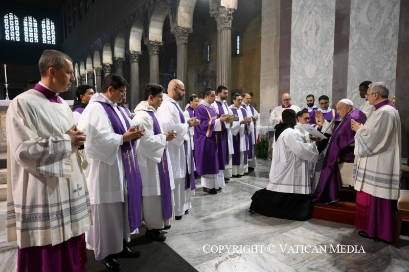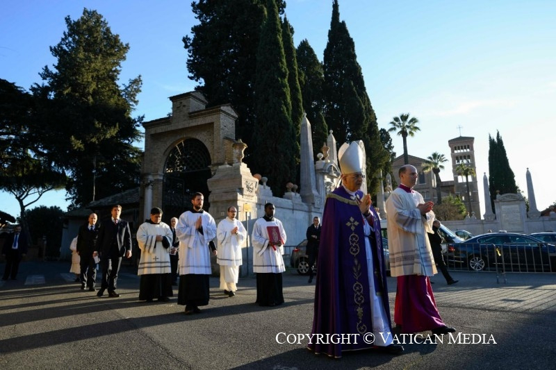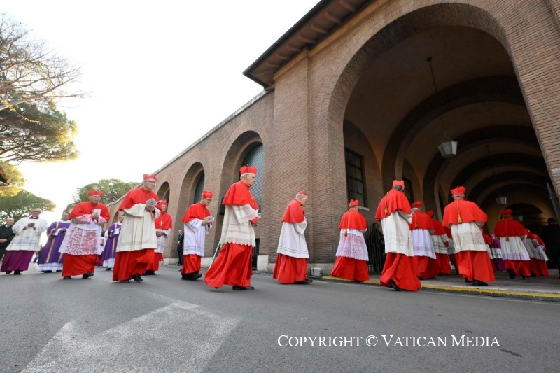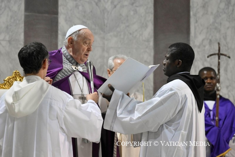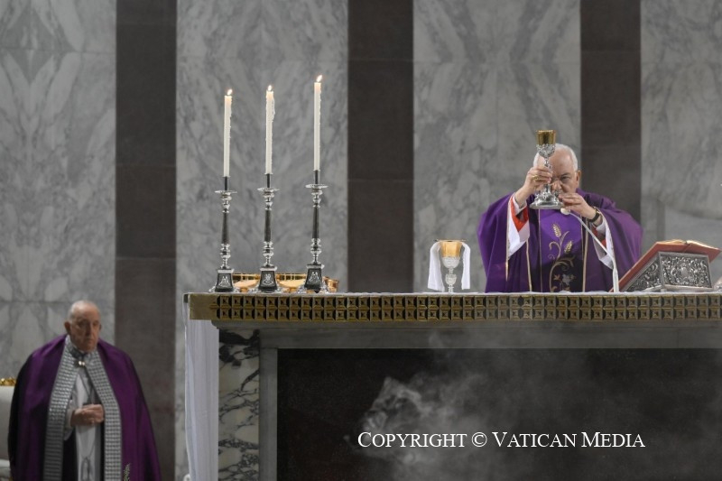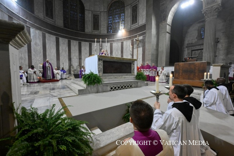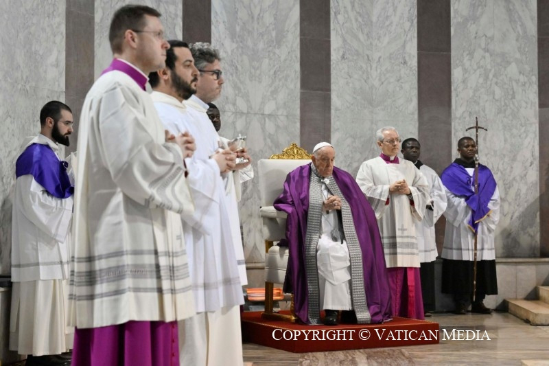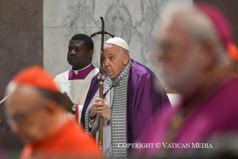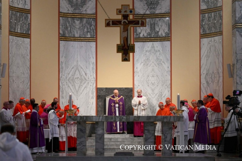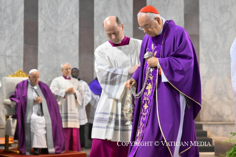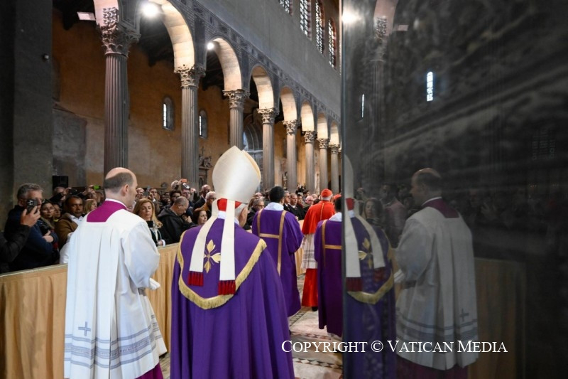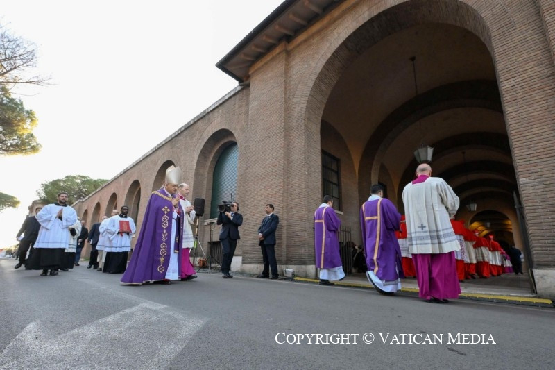 Ezért van az, hogy ma este az ima és az alázat szellemében engedjük, hogy hamut szórjanak a fejünkre. Ez a mozdulat vissza akar vezetni önmagunk lényegi valóságához: por vagyunk, életünk olyan, mint a lehelet (vö. Zsolt 39,6; 144,4), de az Úr – ő és csakis ő, nem mások – nem engedi, hogy eltűnjön; ő összegyűjti és megformálja a port, ami vagyunk, hogy ne szórják szét az élet viharos szelei, és ne tűnjön el a halál szakadékos mélységben.