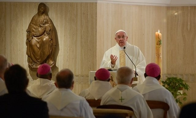 A félelmet meg kell különböztetni az istenfélelemtől, amely erény, és amely szent. Az istenfélelem nem tesz kicsinnyé, nem gyengít le, nem bénít meg: előrevisz a küldetés felé, amelyet az Úr ad nekünk – mutatott rá a pápa.