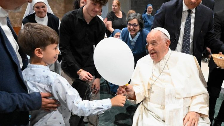 „Isten hozott nálunk, Ferenc pápa!” – köszöntötték a Szentatyát, püspöküket kitörő örömmel, őszinte szeretettel a nővérek, aki azért jött, hogy az idős atyák után most a tíz éven belül szentelt fiatal papokkal beszélgessen.