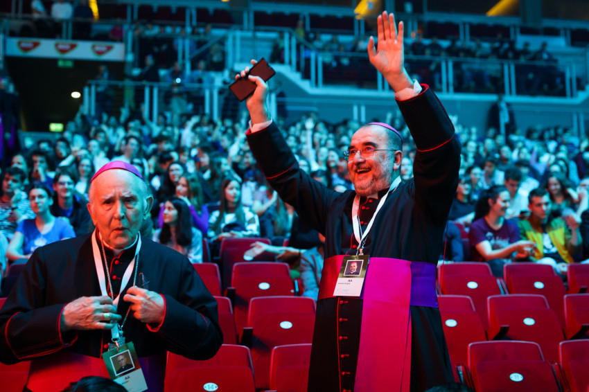 Palánki Ferenc debrecen-nyíregyházi megyéspüspök, az MKPK Ifjúsági Bizottságának elnöke köszöntötte – a fiatalok nevében is – a Szentatyát, köszönetet mondott látogatásáért és azért, hogy a fiatalokat a középpontba állította. „Az ifjúság kora, ahogyan Szentséged fogalmazott a Christus Vivit apostoli buzdításában, örömteli időszak, mely feladattal és felelősséggel is jár. Ez a kor a nagy kérdések ideje: mi az élet értelme, mi az én utam az életben, hogyan leszek boldog, miért van szenvedés, halál, van-e örök élet.” A fiataloknak maguknak kell rátalálniuk a válaszokra, a felnőttek feladata segíteni őket ebben, melléjük szegődni, megmutatni, hogy a hit találkozás és kapcsolat az élő, a feltámadt Jézussal. A fiatalok fogékonyak az elesettek támogatására, érzékenyek a teremtésvédelemre. Az iskolák, a családok, a nevelők, a hitoktatók együttműködése tudja majd meghozni azt a gyümölcsöt, hogy a ma fiataljai biztos erkölcsi alapon álló, tudatos hitvalló felnőttekké váljanak, akik magukért és környezetükért is felelősséget vállalnak.