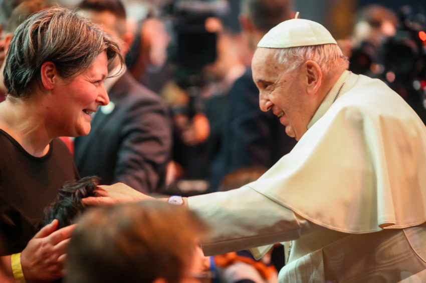 Ferenc pápa a tanúságtételeket követően közvetlen hangon beszélt a fiatalokhoz. Volt olyan mondat – Isten mindig megbocsát –, amelyet kórusban megismételtetett velük; nagy örömet szerzett nekik,