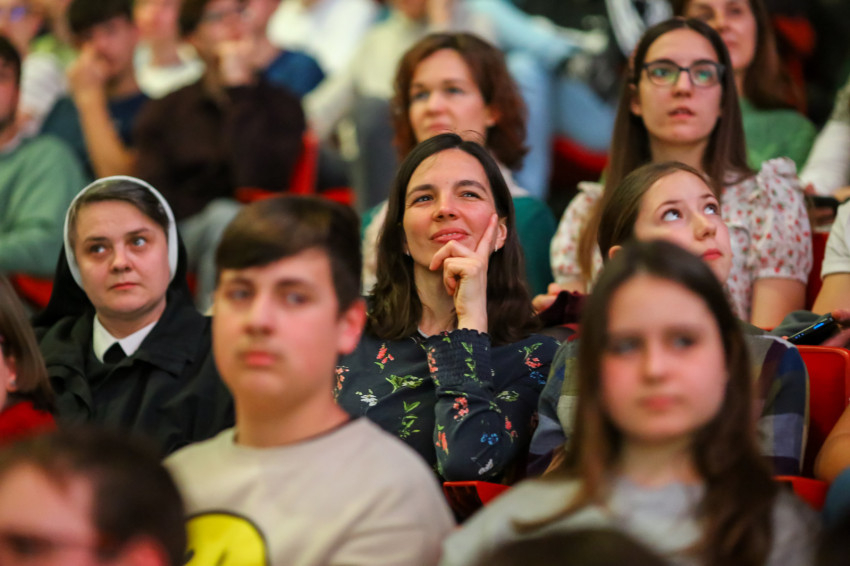 [Palánki] Ferenc püspök úr elmondta, hogy az ifjúság a nagy kérdések és a nagy válaszok ideje. Ez igaz, és fontos, hogy legyen valaki, aki provokál, aki meghallgatja a kérdéseiteket, és nem könnyű válaszokat, nem előrecsomagolt válaszokat ad, hanem segít, hogy bátran vállaljátok az élet kalandját a nagy válaszok keresése során. Előrecsomagolt válaszok nem segítenek, nem tesznek boldoggá. Jézus is segítette az embereket a válaszadásban. Bertalan, azt mondtad, hogy Jézus nem valami távoli mesekönyv szereplője, nem is szuperhős egy képregényben, és ez így igaz: Krisztus a testet öltött Isten, az élő Isten, aki közel jön hozzánk. Ő a Barát, a legjobb barát, ő a Testvér, a legjobb testvér, és nagyon jól tud kérdezni.