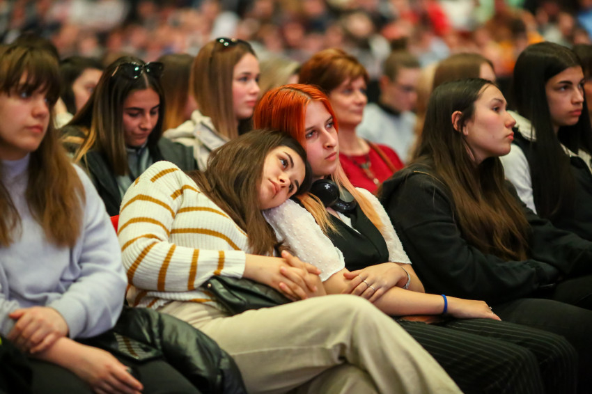 A szegedi Piarista Gimnáziumban tanuló Krabót Bertalan elmesélte Ferenc pápának, milyen problémát okoz neki, hogy sokszor értelmetlen dolgokon stresszel, bénító aggodalom tölti el. Megosztotta a hitben való növekedésének útját:
