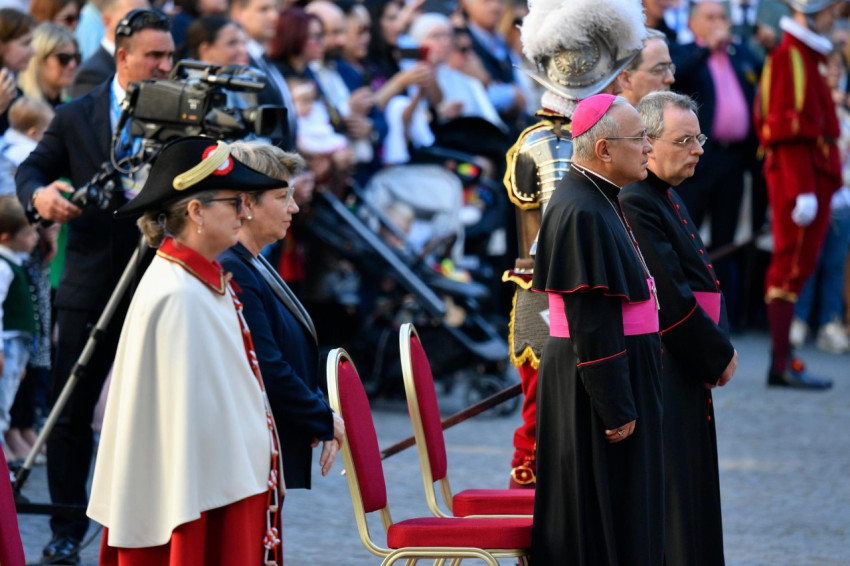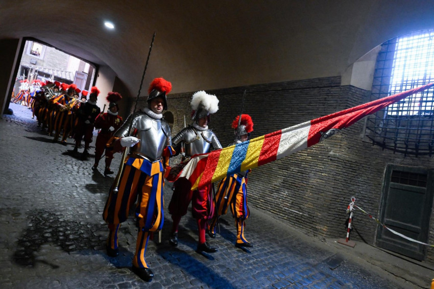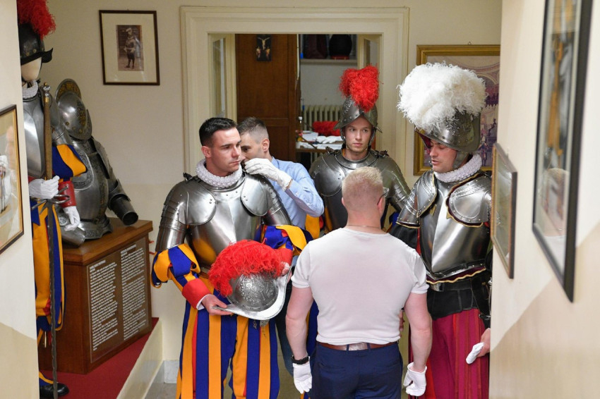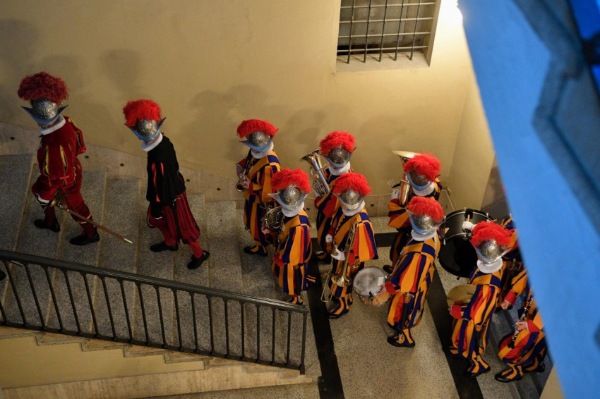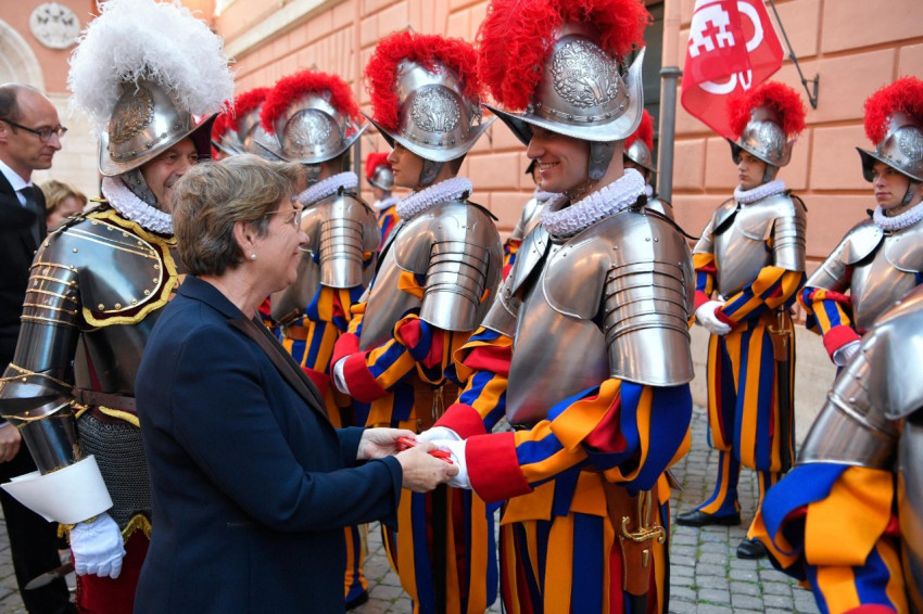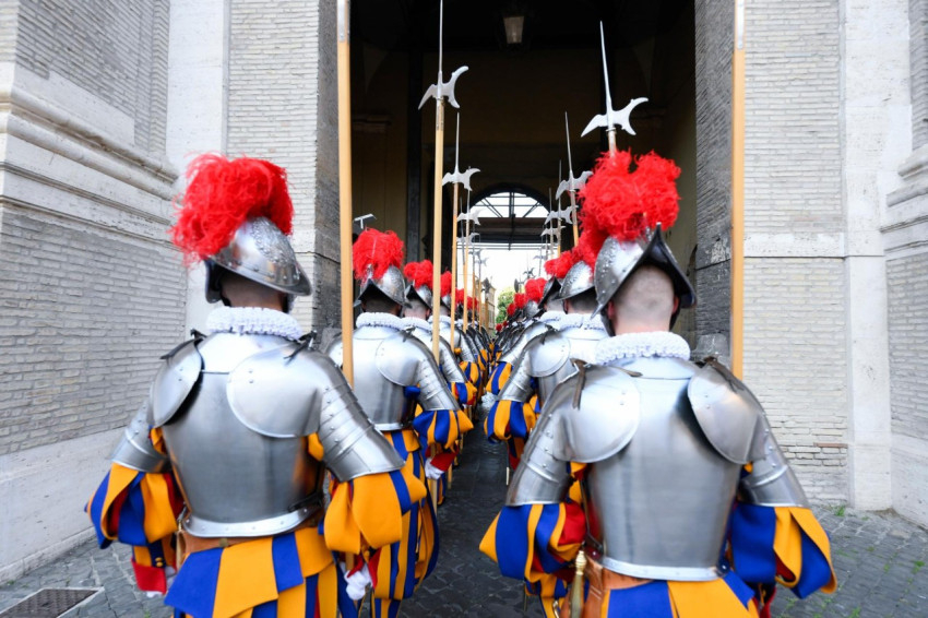 Szombat reggel a gárda 23 újoncának eskütétele alkalmából a svájci származású Kurt Koch bíboros, a Keresztény Egység Előmozdítása Dikasztériumának prefektusa mutatott be szentmisét a Szent Péter-bazilikában. Az újoncok eskütételének ünnepélyes és hagyományos szertartására szombaton délután öt órakor került sor az Apostoli Palota Szent Damázusz-udvarán. Ferenc pápa szombaton délelőtt fél tízkor fogadta a dolgozószobájában Viola Amherd asszonyt, a Svájci Államszövetség alelnökét és kíséretét, akik az eskütételre érkeztek.