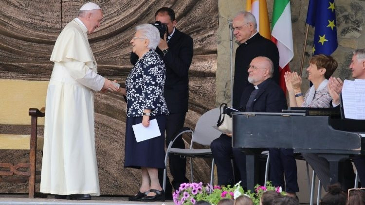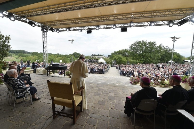Az első kérdést, ti, Loppiano „úttörői” teszitek fel nekem, akik elsőkként, több mint ötven évvel ezelőtt, és azután a rákövetkező évtizedekben folyamatosan belevetettétek magatokat ebbe a kalandba: elhagytátok földeteket, házatokat, munkahelyeteket, hogy ide jöjjetek, hogy ide szenteljétek életeteket és megvalósítsátok ezt az álmot. Mindenekelőtt köszönetet mondok: köszönöm nektek mindazt, amit tettetek, köszönöm Jézusba vetett hiteteket! Ő az, aki ezt a csodát művelte, ti pedig hittetek benne. A hit pedig engedi, hogy Jézus cselekedjen. A hit azért művel csodákat, mert átadja a helyet Jézusnak, ő pedig egyik csoda után a másikat műveli. Az élet ilyen.