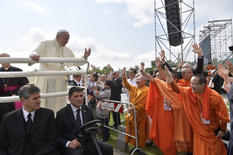 A korszakváltásban, melyben élünk – nem a változás korszakában, hanem a mai korszakváltáskor –, nemcsak arra kell törekedni, hogy elősegítsük az emberek, a kultúrák és a népek találkozását és a civilizációk közötti szövetséget, hanem hogy közösen megküzdjük azt a korszakos kihívást, hogy egy találkozás alapú közös kultúrát és szövetségen alapuló globális civilizációt építsünk. Mint szivárványt, mely színekre bontja Isten szeretetének egyetlen fehér fényét. Ehhez pedig olyan férfiakra és nőkre van szükség (fiatalokra, családokra, minden hivatású és foglalkozású személyre), akik képesek új utakat találni, amelyeken együtt tudnak járni. Az evangélium mindig új, mindig. És ebben a húsvéti időben az Egyház sokszor elmondta nekünk, hogy Jézus feltámadása fiatalságot hoz nekünk és megkívánja tőlünk ezt a megújult fiatalságot. Mindig kreatívan kell előrehaladnunk!