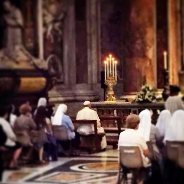 A pápa, amikor észrevette, hogy misézni szeretnék, azt mondta nekem, hogy ő csak imádkozni jött ide, mert ahogy felkelt, már korán misét mondott a Szent Márta-ház kápolnájában, de mégis szerette volna leróni tiszteletét Szent X. Pius előtt. Amikor elkezdtem a szentmisét, ő ott maradt, és részt vett rajta a többi hívővel együtt. Amikor pedig eljött a béke-köszöntés a misében, akkor a szomszédjai felé fordulva békejobbot nyújtottak egymásnak. Látva pedig, hogy elindulok én is feléje a köszöntésre, elém jött.