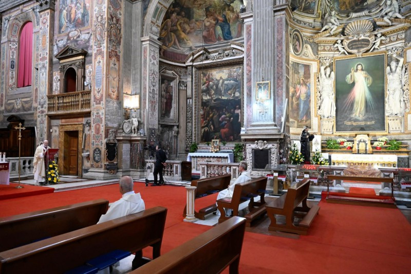 Az isteni irgalmasság mai ünnepén a legszebb híradás a később érkezett tanítványon keresztül zajlik. Csak ő hiányzott, Tamás. De az Úr megvárta. Az irgalmasság nem hagyja magára, aki lemaradt. Most, amikor a világjárványból való lassú és fáradságos újrakezdésre gondolunk, épp ez a veszély fenyegethet: elfeledkezni arról, aki lemaradt. Fennáll a veszély, hogy egy még rosszabb vírus támad meg bennünket, a közömbös önzőségé. Ennek a vírusnak az átadása azzal a gondolattal kezdődik, hogy az élet akkor lesz jobb, ha nekem jobb lesz, hogy akkor lesz minden rendben, ha számomra rendben mennek a dolgok. Innen indulunk, és odáig mehetünk, hogy válogatunk az emberek között, leselejtezzük a szegényeket, feláldozzuk a lemaradókat a haladás oltárán.
