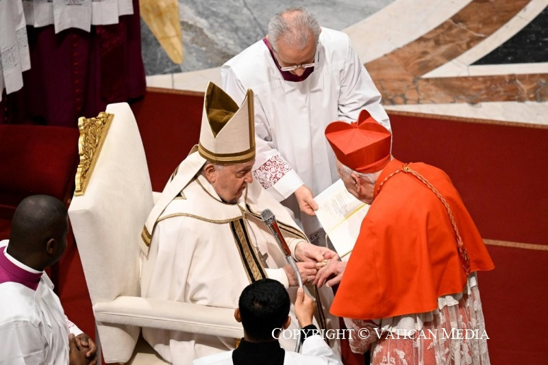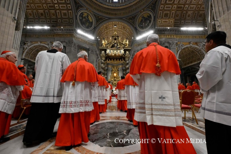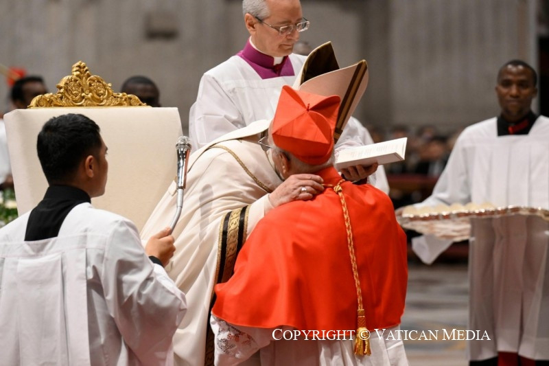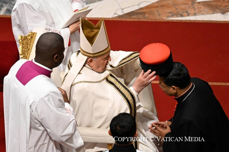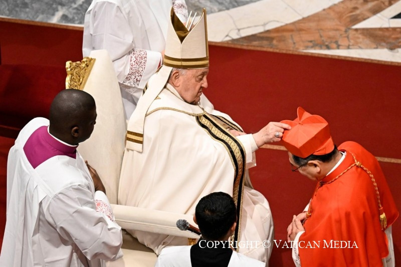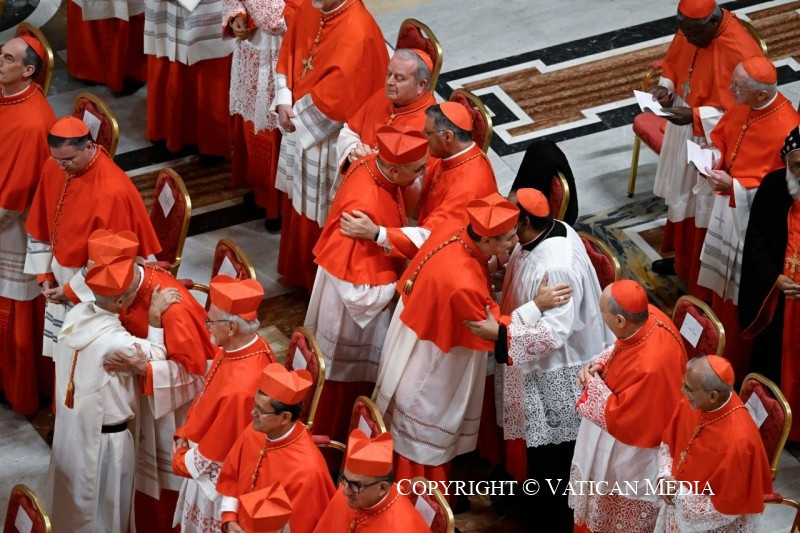 Beszédében a Szentatya arra kérte az új bíborosokat, hogy Jézus legyen életük középpontjában, az ő útján járjanak, ne egymással versengjenek, hanem „ápolják a találkozás iránti szenvedélyt, legyenek a közösség kézművesei és az egység építői”.