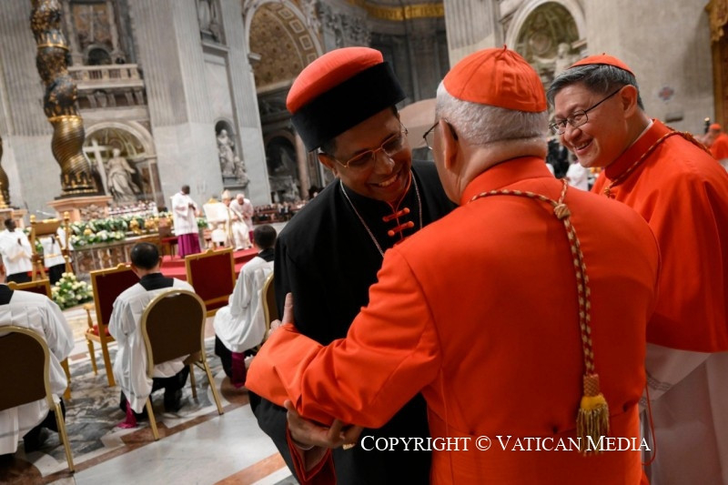 az Úr, rátok tekintetve, akik különböző történelmekből és kultúrákból jöttök, és az Egyház katolicitását képviselitek, arra hív benneteket, hogy legyetek a testvériség tanúi, a közösség kézművesei és az egység építői. Ez a küldetésetek!