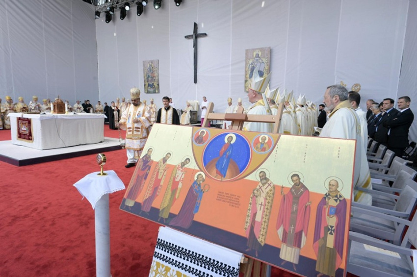 Amikor a szabadságra gondolunk, meg kell jegyeznem, hogy ezt az isteni liturgiát a Szabadság mezején tartjuk. Ez a jelentős helyszín népetek egységére utal, mely a vallási kifejeződési formák különbözőségeiben valósult meg: ez olyan szellemi örökséget jelent, amely gazdagítja és meghatározza a román nemzeti kultúrát és identitást. Az új boldogok szenvedtek és feláldozták életüket, mert szembeszálltak egy szabadságtagadó és az emberi személy alapvető jogait elnyomó ideológiai rendszerrel. Abban a szomorú korszakban a katolikus közösség életének kemény megpróbáltatást jelentett a diktatórikus és ateista rezsim: a görögkatolikus egyház és a latin rítusú katolikus egyház összes püspökét üldözték, bebörtönözték, és velük együtt sok világi hívőt is.