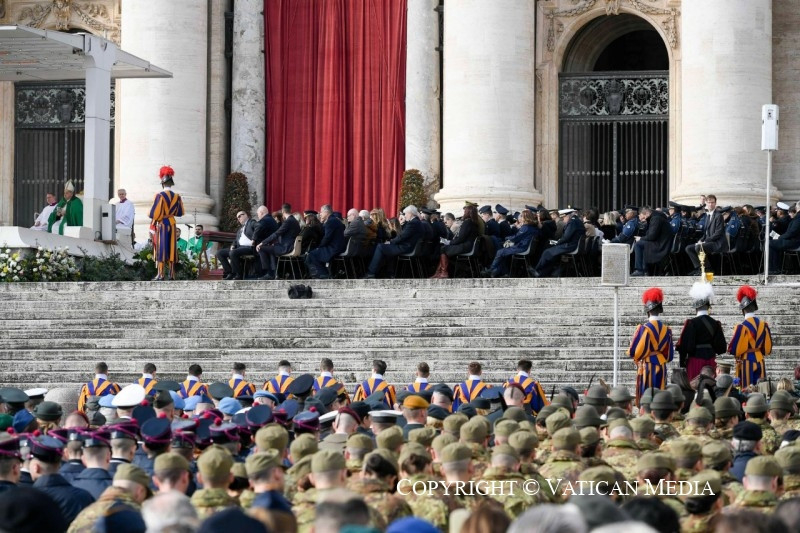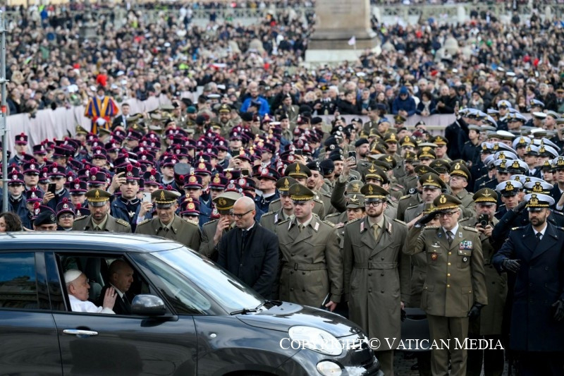 Testvéreim, ez a reményüzenet kísér ma bennünket, amikor a fegyveres erők, a rendőrség és a biztonsági erők jubileumát ünnepeljük, akiknek köszönetet mondok szolgálatukért. Üdvözlöm az összes jelenlévő hatóságot, a katonai szövetségeket és akadémiákat, valamint a tábori ordináriusokat és lelkészeket.