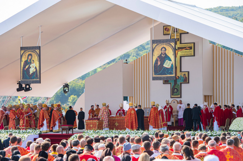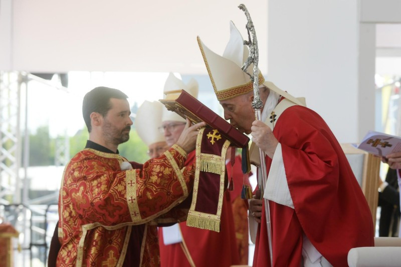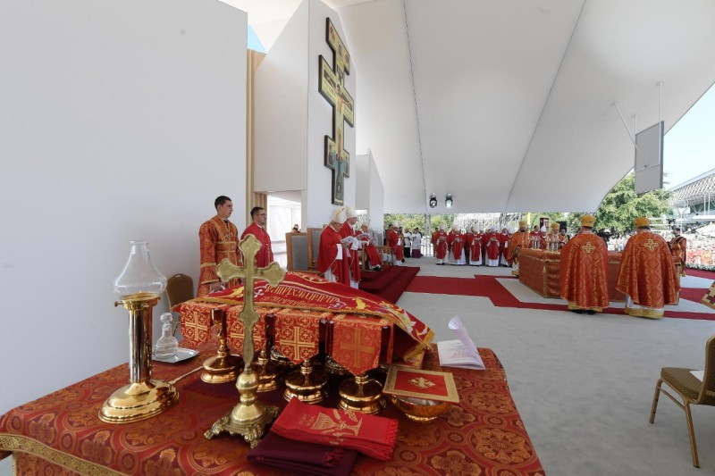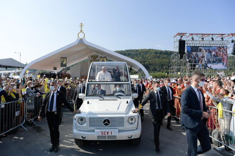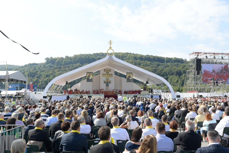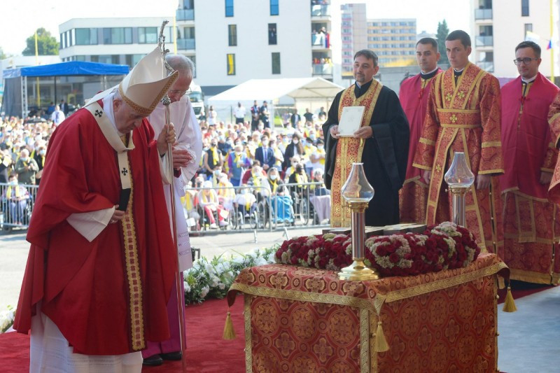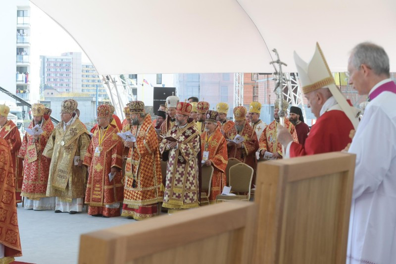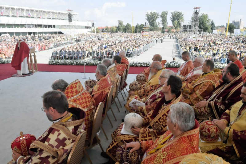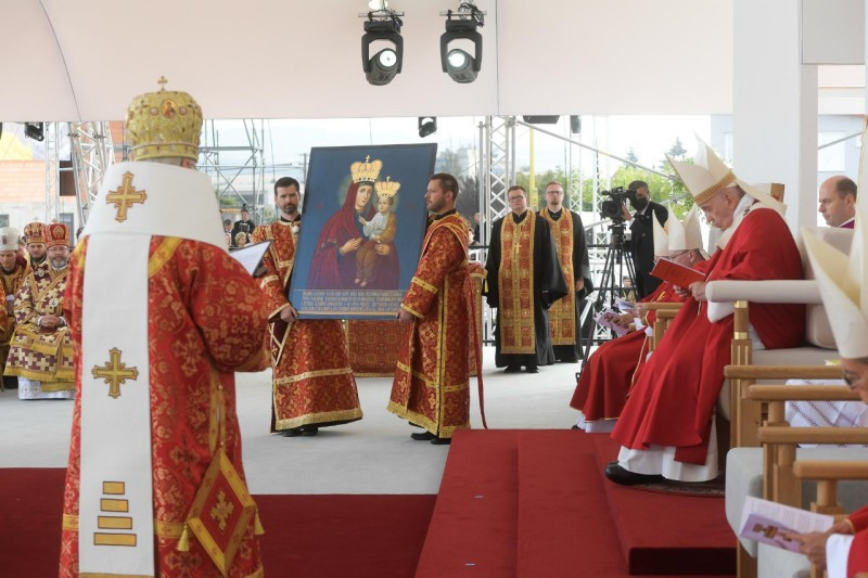 Ferenc pápa személyében elsőként mutatott be római katolikus egyházfő keleti rítusú Szent Liturgiát az országban. A történelmi jelentőségű Szent Liturgián együtt ünnepelt a Szlovák Püspöki Konferencia tagjaival Szvjatoszlav Sevcsuk nagyérsek, az ukrajnai görögkatolikus egyház vezetője is. A Szentatyát Jan Babjak SJ, eperjesi érsek fogadta. A felvidéki magyar görögkatolikus hívekkel és parókusaikkal együtt ünnepelte a Szent Liturgiát Kocsis Fülöp hajdúdorogi metropolita, Orosz Atanáz miskolci, valamint Szocska Ábel nyíregyházi megyéspüspök is.