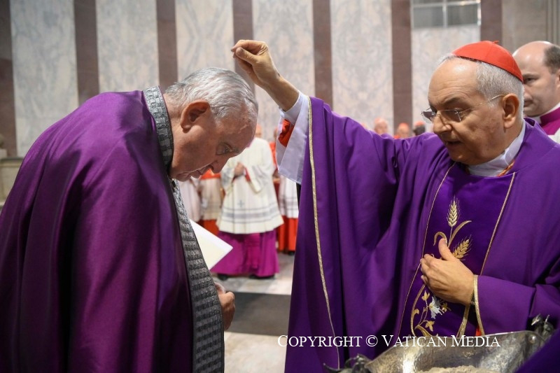 Nekünk addig van életünk, amíg ő az élet. Ő a Teremtő, míg mi törékeny agyag vagyunk, melyet az ő keze formál. A földből származunk, és szükségünk van az égre, szükségünk van őrá; Istennel feltámadunk majd hamvainkból, de nélküle csak por vagyunk. És amikor alázatosan lehajtjuk fejünket a hamvazkodáshoz, akkor idézzük fel szívünkben ezt az igazságot: az Úré vagyunk, hozzá tartozunk! Ő ugyanis „megalkotta az embert a föld porából, és orrába lehelte az élet leheletét” (Ter 2,7): vagyis