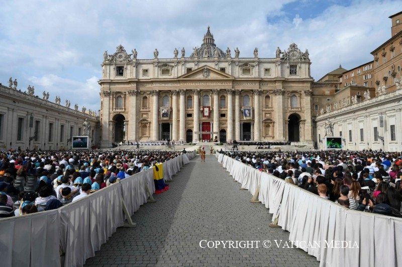 A ma szentté avatott két szent emlékeztet bennünket az együtt járás és a megköszönni tudás fontosságára. Scalabrini püspök, aki két kongregációt alapított a migránsok gondozására, egy férfi és egy női kongregációt, azt mondta, hogy a kivándorlók közös útjában nemcsak problémákat kell látni, hanem a Gondviselés tervét is: „Éppen az üldözések által kikényszerített kivándorlásoknak köszönhetően lépte át az Egyház Jeruzsálem és Izrael határait, és vált »katolikussá« – mondta Scalabrini; a mai elvándorlásoknak köszönhetően az Egyház a népek közötti béke és közösség eszköze lesz” (L’emigrazione degli operai italiani [Az olasz munkások kivándorlása], Ferrara, 1899). Van napjainkban egy migráció, itt, Európában, amely sok szenvedést okoz nekünk, és arra késztet, hogy megnyissuk szívünket: a háború elől menekülő ukránok migrációja. Ne feledkezzünk el ma a meggyötört Ukrajnáról! Scalabrini a távolba, előre tekintett, egy korlátok nélküli és senkit sem idegennek tartó világ és Egyház felé. Artemide Zatti szalézi testvér pedig – a kerékpárjával – a hála élő példája volt: a tuberkulózisból kigyógyulva egész életét annak szentelte, hogy másokat szolgáljon, hogy szeretettel és gyengéden ápolja a betegeket. Mesélik, hogy látták, amint az egyik betegének holttestét a vállán cipelte. Hálával telve azért, amit kapott, úgy akart köszönetet mondani, hogy magára vállalta mások sebeit. Két életpélda.