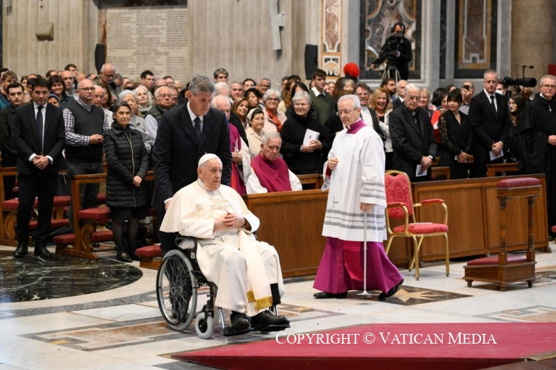 Jézus épp Naim városába készül bevonulni. Vele tartanak tanítványai, és „nagy tömeg” kíséri (vö. Lk 7,11). Amikor a városkapu közelébe ér, egy másik menet is arra vonul, de ellenkező irányba: egy özvegy anya egyetlen fiának temetésére mennek. Az evangélium ezt mondja: „Amikor az Úr meglátta, megesett rajta a szíve” (Lk 7,13). Jézus meglátja, és együttérzés ébred benne. XVI. Benedek, akiről ma az év során elhunyt bíborosokkal és püspökökkel együtt megemlékezünk, első enciklikájában azt írta, hogy Jézus programja „a látó szív” (Deus caritas est, 31). Hányszor emlékeztetett bennünket arra, hogy a hit elsősorban nem egy megértendő eszme vagy egy elfogadandó erkölcs, hanem egy személy, akivel találkoznunk kell, Jézus Krisztus, akinek szíve erősen dobog értünk, és amikor látja szenvedéseinket, szíve megesik rajtunk.