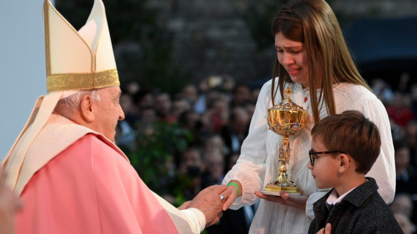 Az apostol azonban hatékony gyógyszert kínál nekünk, amikor azt írja: „Minden körülmények között imádság és könyörgés által hálaadással tárjátok kéréseiteket Isten elé” (Fil 4,6). Az Istenbe vetett hit reményt ad! Épp ezekben a napokban, az itt, Ajaccióban tartott kongresszuson világosan megfogalmazták, mennyire fontos a hit ápolása, a népi jámborság szerepének felértékelésével. Gondoljunk a rózsafüzér imádságra: ha újra felfedezzük és jól gyakoroljuk, megtanít bennünket arra, hogy