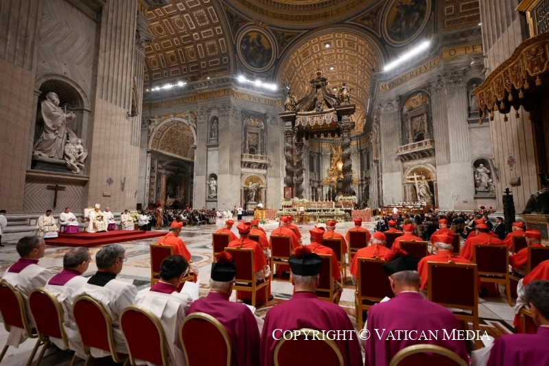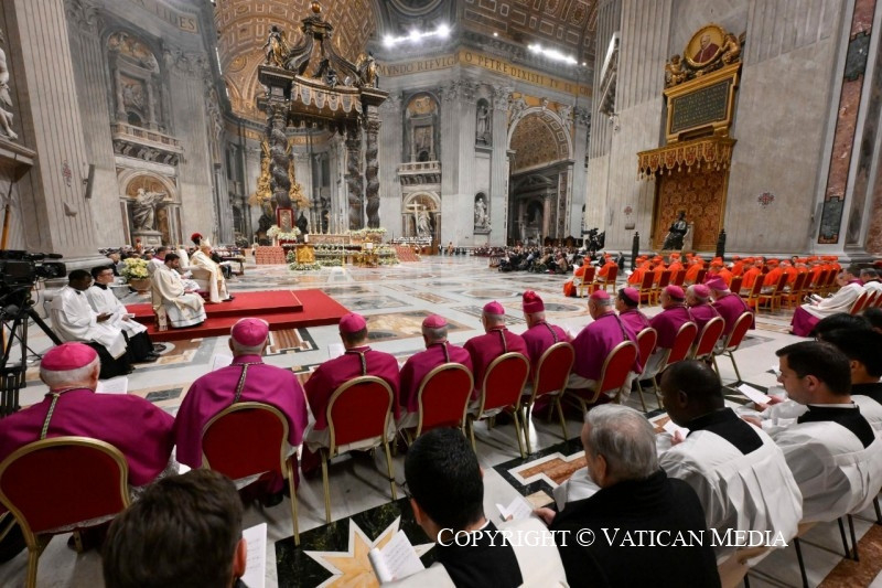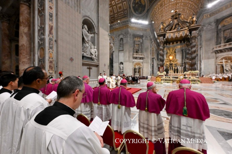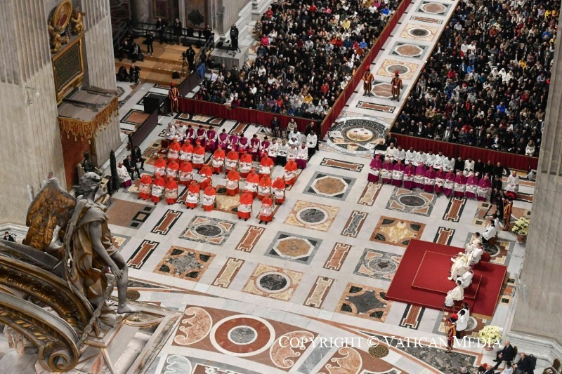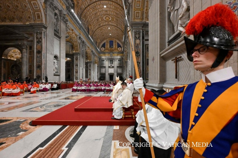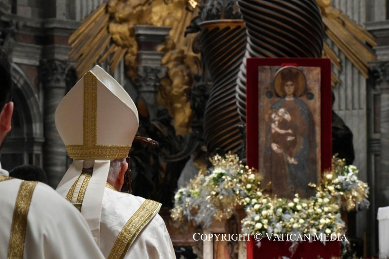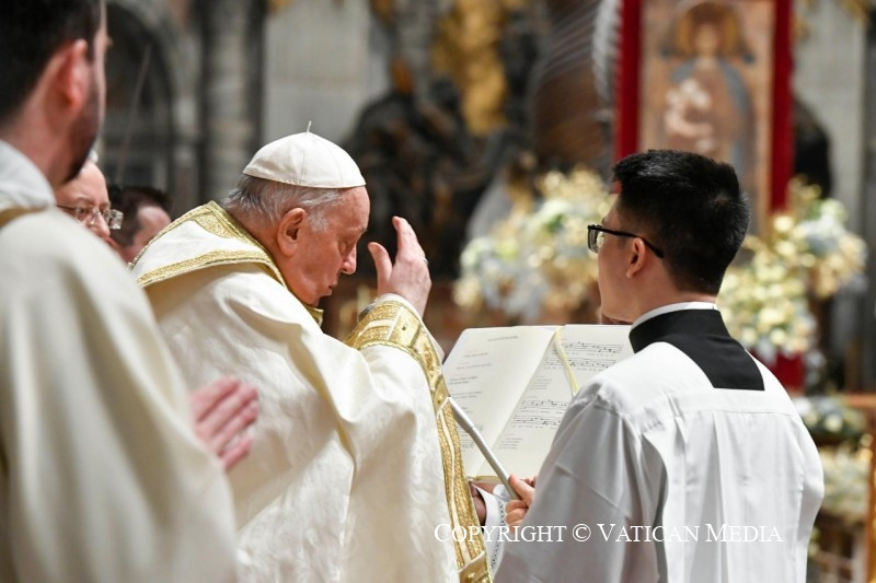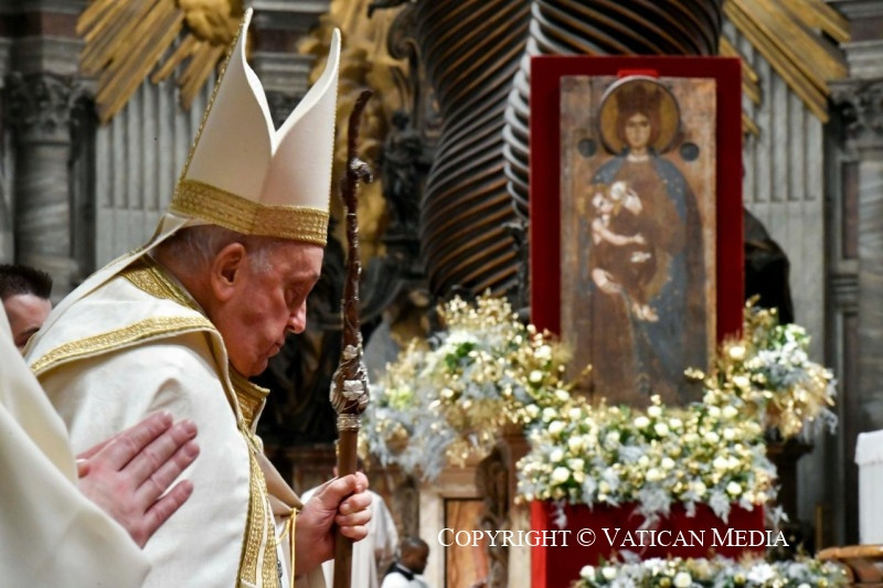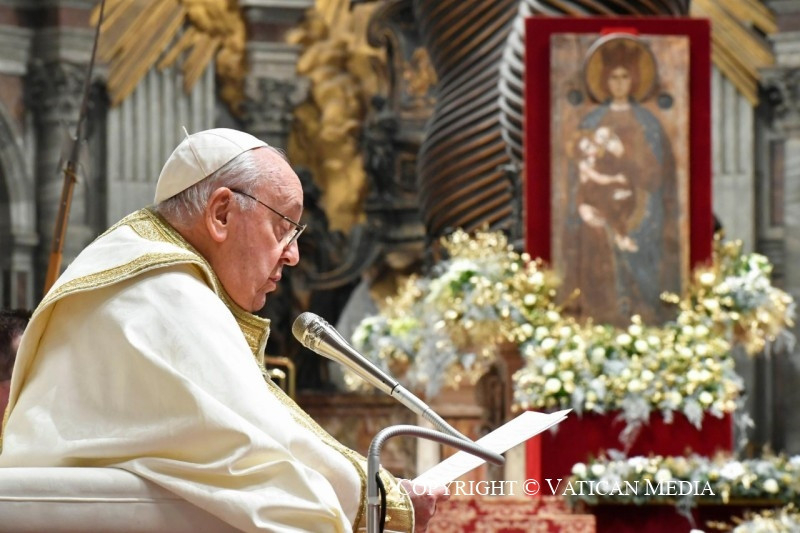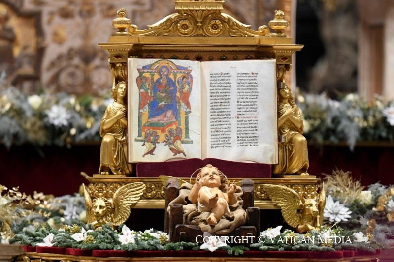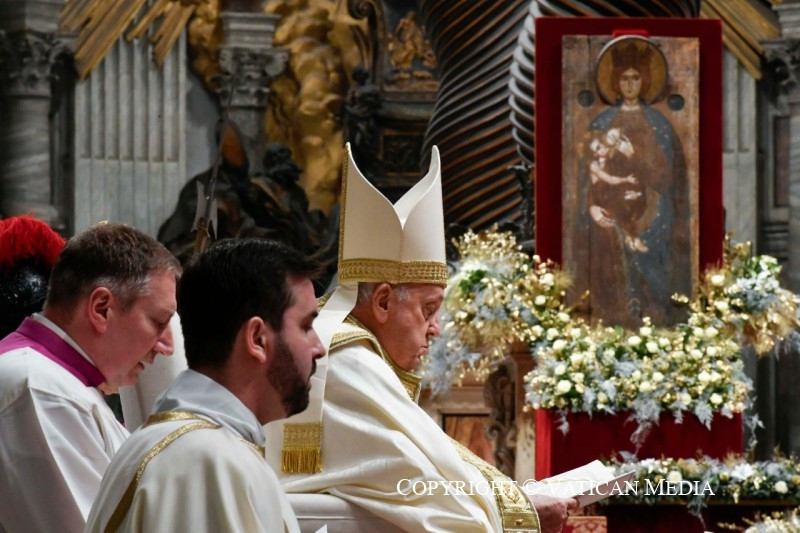 Ebben a liturgiában viszont egy egészen más légkör veszi körbe az embert: a dicsőítés, az ámulat, a hála légköre. És ez nem a bazilika fenségessége, nem a fények és az énekek miatt történik – ezek inkább csak következmények –, hanem azon misztérium miatt, amelyet az első zsoltár antifónája így fejez ki: „Ó, csodálatos csere! Az emberek Teremtője emberi testet és lelket öltött, Szűztől született; […] istenségének részeseivé tett minket.” Ez a csodálatos csere!