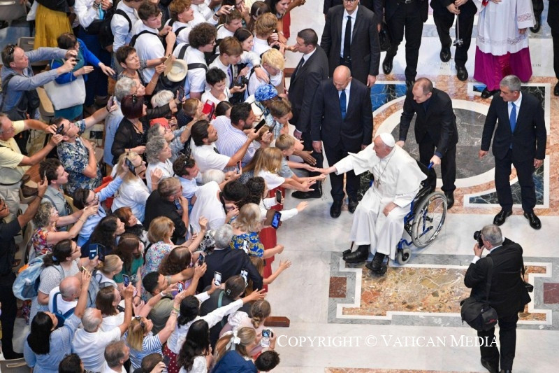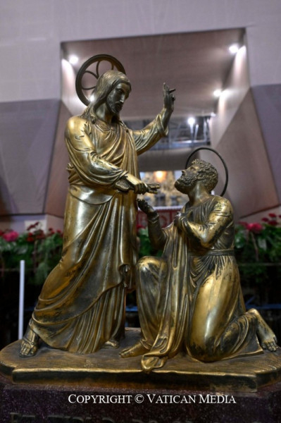 A szabadulás éjszakáján először a börtön kapui nyílnak ki csodálatos módon; majd Péterről és az őt kísérő angyalról azt mondja a szöveg, hogy „eljutottak a város felé nyíló vaskapuhoz, és ez magától kinyílt előttük” (ApCsel 12,10). Nem ők nyitják ki a kaput, az magától nyílik ki. Isten az, aki kinyitja a kaput, ő az, aki kiszabadít, és egyengeti az utat. Ahogy az evangéliumból hallottuk, Jézus Péterre bízza az ország kulcsait; Péter azonban azt tapasztalja, hogy az Úr az, aki először kinyitja a kapukat, ő mindig előttünk jár. És van itt egy különös dolog: a börtön kapuit az Úr ereje kinyitja, de ezt követően Péter nehezen lép be a keresztény közösség házába: aki a kapuhoz megy, azt hiszi, hogy egy kísértet zörget, és nem nyitja ki neki (vö. ApCsel 12,12–17). Milyen gyakran előfordul, hogy a közösségek nem tanulják meg a kapuk kinyitásának ezt a bölcsességét!