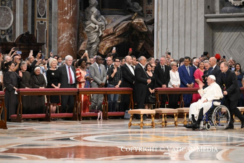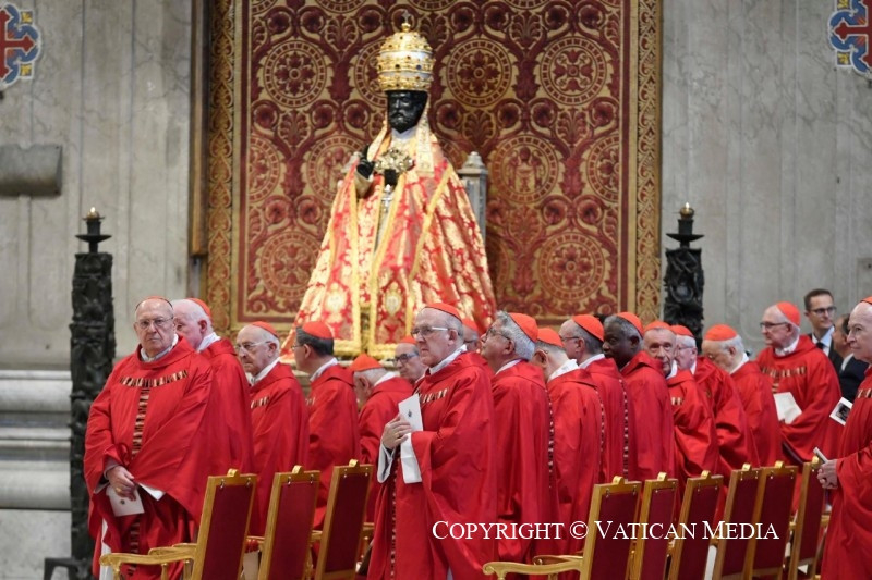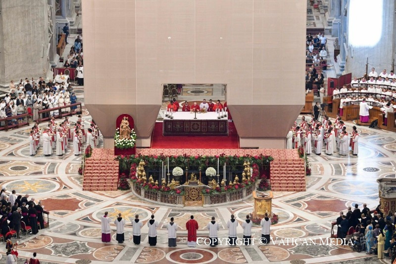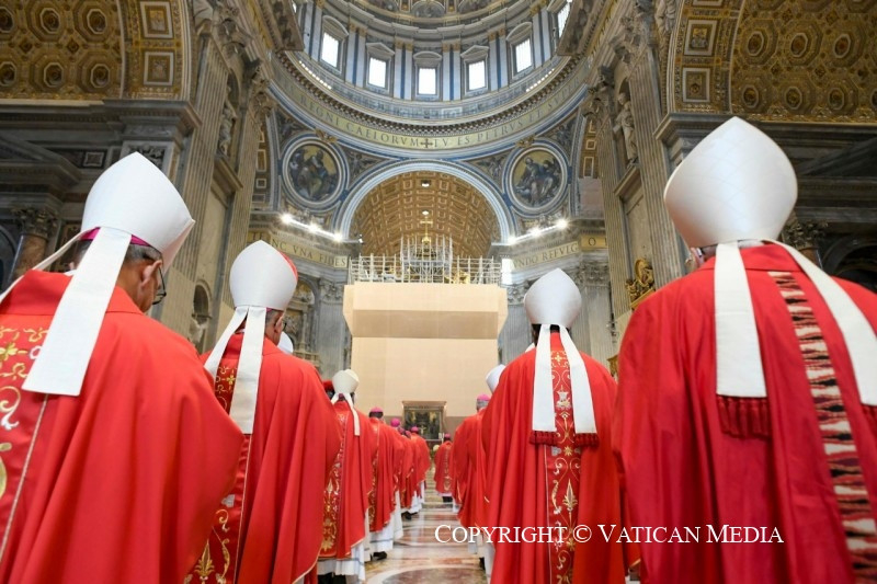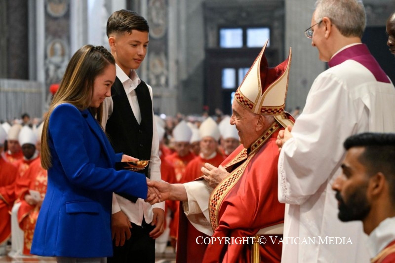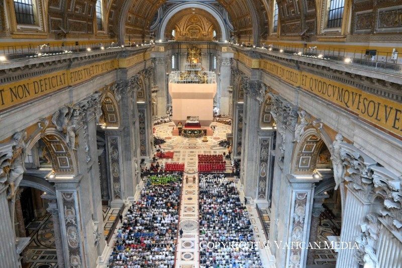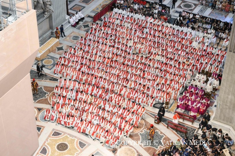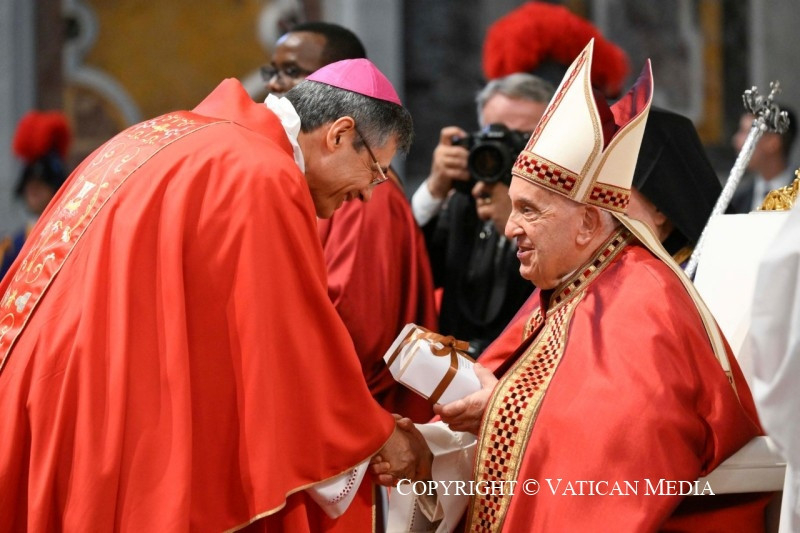 Testvéreim, ma kapják meg a palliumot az elmúlt évben kinevezett metropolita érsekek. Péterrel közösségben és Krisztus példáját követve, aki kapu a juhok számára (vö. Jn 10,7), arra kaptak meghívást, hogy buzgó pásztorok legyenek, akik kinyitják az evangélium kapuit, és akik szolgálatukkal hozzájárulnak egy nyitott kapukkal rendelkező Egyház és társadalom építéséhez.