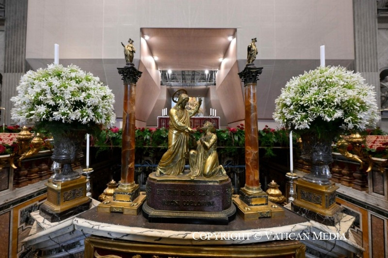 Pál apostol útja is mindenekelőtt húsvéti tapasztalat. Először ugyanis a damaszkuszi úton a Feltámadott átalakítja, majd a megfeszített Krisztus folyamatos szemlélésében Pál felfedezi a gyengeség kegyelmét: amikor gyengék vagyunk – mondja –, akkor vagyunk igazából erősek, mert többé nem magunkba, hanem Krisztusba kapaszkodunk (vö. 2Kor 12,10). Az Úr által megragadva és vele együtt megfeszítve írja Pál: „Már nem én élek, hanem Krisztus él bennem” (Gal 2,20). Mindennek célja azonban nem egy, a belső életre szűkülő és vigasztaló vallásosság – ahogyan azt ma bizonyos egyházi mozgalmak elénk állítják: egy szalonlelkiség –, épp ellenkezőleg, az Úrral való találkozás Pál életében az evangelizálás iránti buzgóságot gyújtja meg. Ahogy a szentleckében hallottuk, élete végén így nyilatkozik: „Az Úr mellém állt, és erőt öntött belém, hogy befejezzem az evangélium hirdetését, s tudomást szerezzen róla minden pogány” (2Tim 4,17).