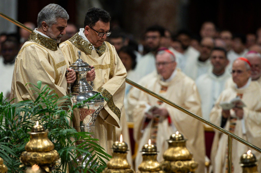Ezt a Lelket hívjuk segítségül papságunkra: szentelésünkkor ezt a Lelket kaptuk meg, és Jézus Lelke az, aki szolgálatunk csendes főszereplője marad. A nép érzi a leheletét, amikor a szavak valósággá válnak bennünk. Másokat megelőzően a szegények, aztán a gyermekek, a serdülők, a nők, és azok is, akik az Egyházzal való kapcsolatukban megsebződtek, „ki tudják szagolni” a Szentlelket: megkülönböztetik más világi szellemektől, felismerik őt abban, hogy összhang uralkodik a beszédünk és az életünk között. Beteljesedett próféciává válhatunk, és ez gyönyörű! A szent krizma, melyet ma megszentelünk, megpecsételi ezt az átalakító misztériumot a keresztény élet különböző szakaszaiban. És figyelem:
