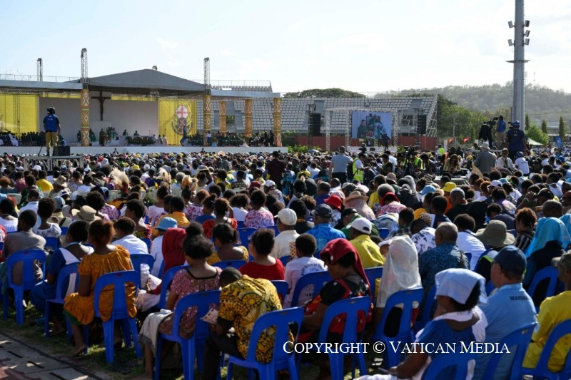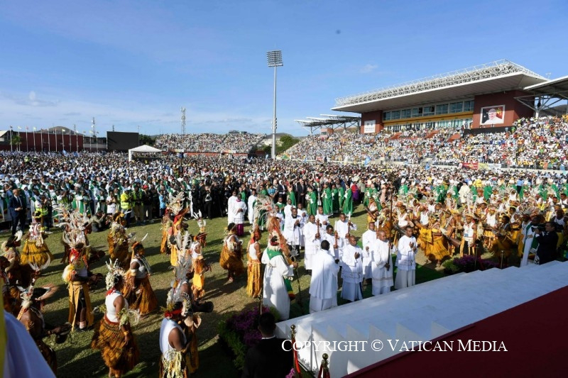 Nektek is azt mondja ma az Úr: „Bátorság, ne félj, pápua nép! Nyílj meg! Nyílj meg az evangélium örömére, nyílj meg az Istennel való találkozásra! Nyílj meg a testvérek szeretetére!” Egyikünk se maradjon süket és néma e meghívás előtt!