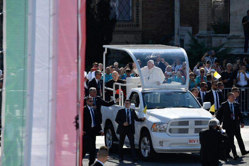 Csakúgy mint ők, mi se elégedjünk meg kevéssel: ne érjük be egy olyan hittel, amely csak a szertartásokból és az ismétlésekből él. Nyíljunk meg a megfeszített és feltámadt Isten botrányos újdonságára, aki megtört kenyérként életét adja a világért. Akkor örömben fogunk élni és örömet viszünk mindenhová.
