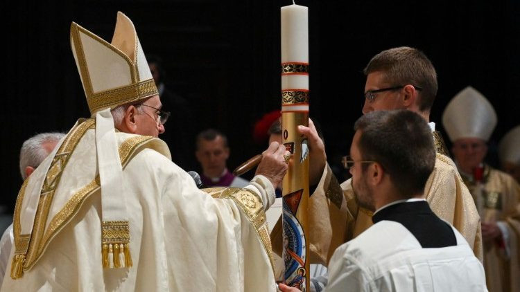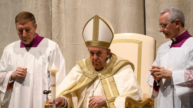 Az oltárhoz vezető körmenetet, a húsvéti gyertya meggyújtását és az Exsultet eléneklését az igeliturgia és a keresztelés liturgiája követte, melynek során a pápa nyolc újonnan megtért – Albániából, az Amerikai Egyesült Államokból, Nigériából, Olaszországból és Venezuelából származó – hívőnek szolgáltatta ki a beavató szentségeket.