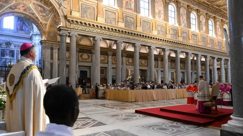 Ma egyfajta előőrsként gyűltünk itt össze, és az ő közbenjárását kérjük Róma városáért, városunkért, az egész világért, különösen a békéért: azért a békéért, amely csak akkor igazi és tartós, ha bűnbánó és bocsánatot nyert szívekből indul ki