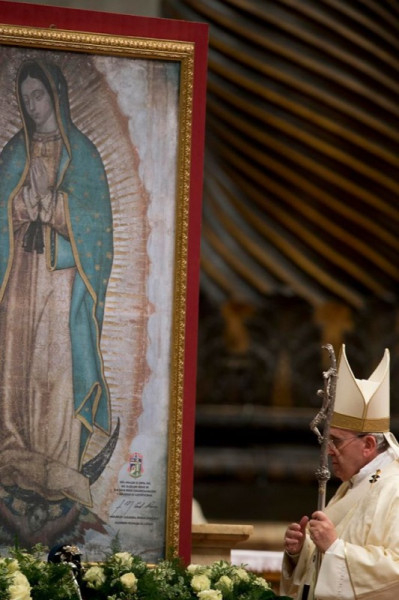 A nagy latin-amerikai haza nemzetei és népei emlékeznek ma hálával a Szűzanya látogatására és közelségére, vele együtt énekeljük a Magnificatot, és rábízzuk népeink életét. Amikor a Szűzanya megjelent Szent Juan Diegónak a Tepeyac-dombon, úgy mutatkozott be mint a „mindig tökéletes Szűz Mária, az igaz Isten Anyja. Készéggel sietett, hogy átölelje az új amerikai népeket. Olyan volt, mint a nagy égi jel, a napba öltözött asszony, aki magára vette az őslakos népek kulturális és vallási jelképrendszerét, meghirdette, és odaadta a Fiát a gyötrelmes sorsú meszticek új népeinek – fogalmazott a pápa.