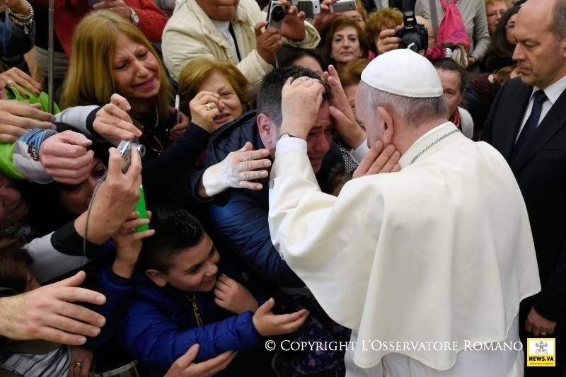A Biblia azt is írja, hogy az Úr „kegyes”, abban az értelemben, hogy kegyelmet gyakorol, együttérez, nagyságában lehajol a gyengéhez és a szegényhez, mindig kész a befogadásra, a megértésre, a megbocsátásra. Olyan, mint az apa a Lukács-evangéliumban olvasható példabeszédben (vö. Lk 15,11–32): ez az apa nem zárkózik be a neheztelésbe amiatt, hogy a kisebbik fia elhagyta, hanem épp ellenkezőleg, folytonosan várja – hiszen ő adott neki életet –, aztán pedig elébe szalad, megölelgeti, nem is engedi, hogy végigmondja bűnbánó szavait, szinte a szájára teszi a kezét, olyan nagy benne a szeretet és az öröm, amiért megtalálta; aztán pedig kimegy, hogy a nagyobbik fiát is hívja, aki méltatlankodik, és nem hajlandó ünnepelni, azt a fiát, aki bár mindig otthon maradt, inkább szolgaként, mint fiúként élt, de az apa hozzá is lehajol, próbálja becsalogatni, igyekszik megnyitni szívét a szeretetre, hogy senki se maradjon ki az irgalmasság ünnepéből. Az irgalmasság ünnep!