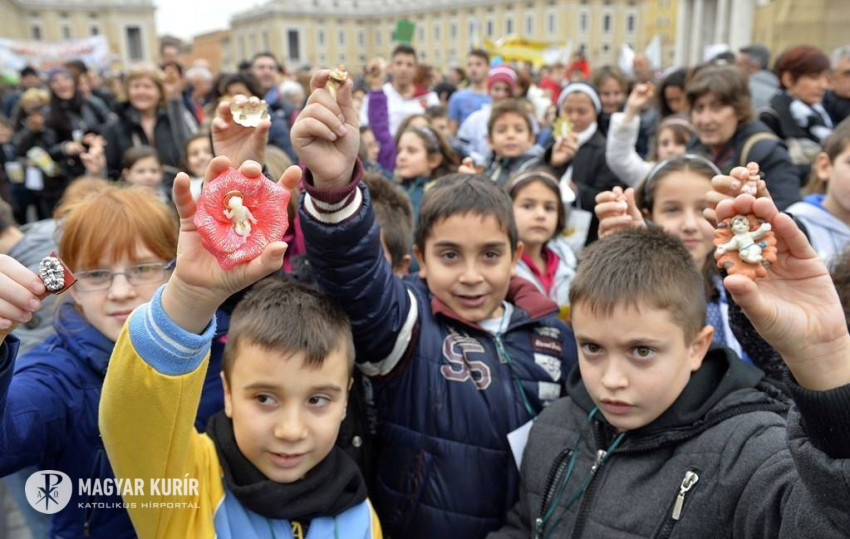 Azután üdvözölte a gyerekeket, és boldog karácsonyt kívánt nekik. A Római Oratóriumok Központja szervezte meg a gyerekek Szent Péter térre jövetelét, hogy szokás szerint a szentatya áldását kérjék a gyermek Jézust ábrázoló kis szobrocskáikra. Nekik is szólt a pápa felhívása: „Az imádság a lélek lélegzetvétele: fontos, hogy a nap folyamán találjunk időt arra, hogy megnyissuk szívünket Isten előtt, és elég, ha ehhez a keresztény nép legegyszerűbb, legrövidebb imáit használjuk.”