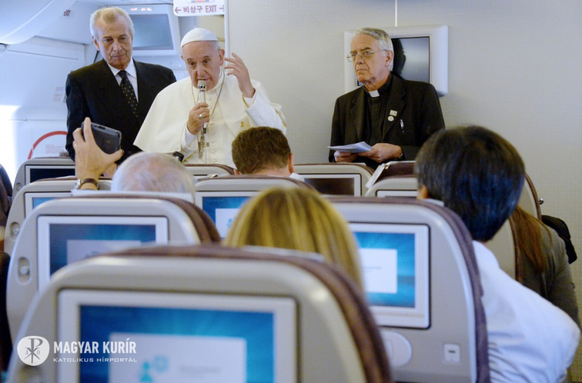 „Jövőre szeretnék ellátogatni Philadelphiába, a családok találkozójára, és meghívott az Egyesült Államok elnöke is az amerikai Kongresszusba, továbbá az ENSZ-főtitkár New Yorkba. A mexikóiak azt szeretnék, hogy menjek el a Guadalupei Szűzanyához, a spanyol királyi pár és a püspöki konferencia is meghívott, meghívtak Santiago de Compostelába is, talán lehetséges, de nem mondok többet, mert még nincs eldöntve” – válaszolta még a spanyol újságírónőnek Ferenc pápa a Szöulból Rómába tartó repülőgépen.