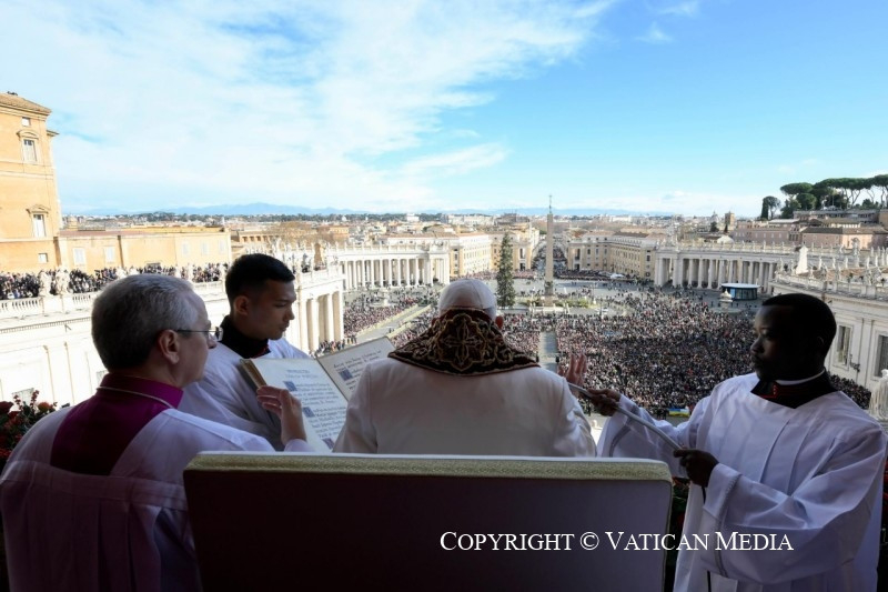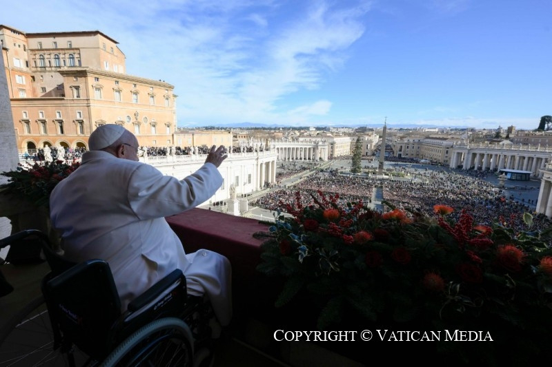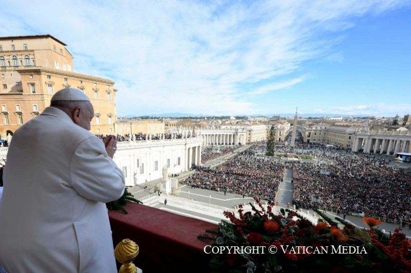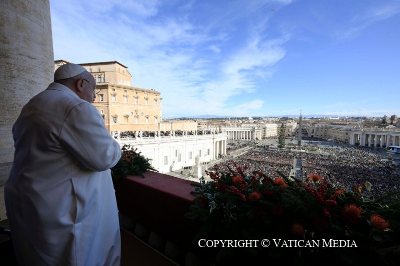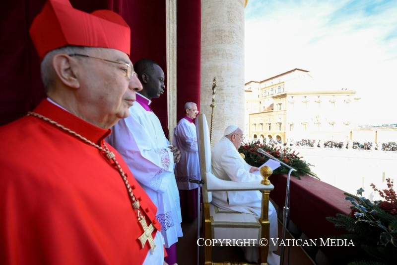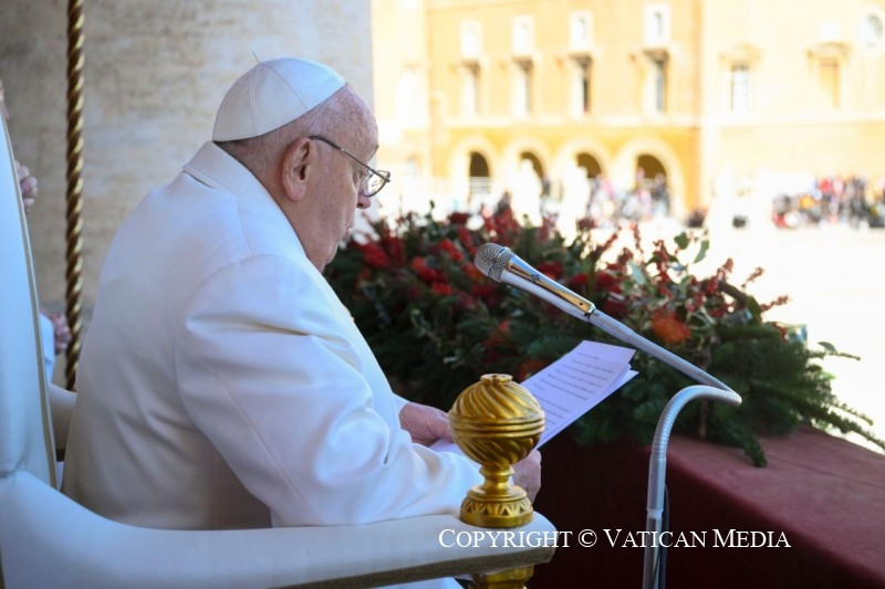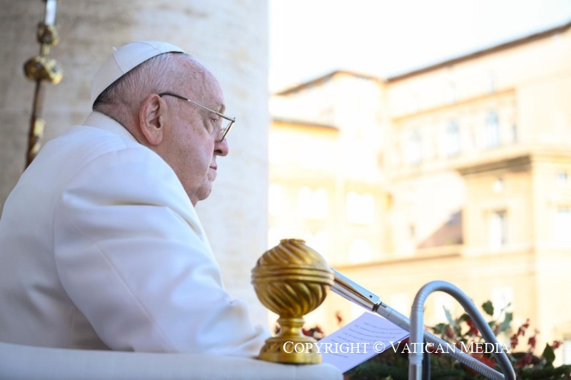 Hallgassanak el a fegyverek a Közel-Keleten! A betlehemi jászolra szögezett tekintettel Izrael és Palesztina keresztény közösségei felé száll gondolatom, különösen Gázában, ahol igen súlyos a humanitárius helyzet. Szüneteljen a harc, engedjék szabadon a túszokat és segítség meg az éhségtől és háborútól szenvedő lakosságot. Közel vagyok Libanon keresztény közösségéhez is, különösen az ország déli részén, és a szíriai közösségekhez is, ebben a kényes pillanatban. Nyíljanak meg a párbeszéd és a béke kapui az egész térségben, amelyet a konfliktus sújt. Ezen a ponton meg szeretnék emlékezni a líbiai népről is, bátorítva, hogy olyan megoldásokat keressenek, amelyek lehetővé teszik a nemzeti kiengesztelődést.