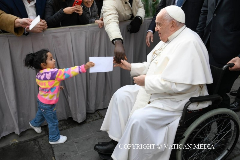 A karizmákkal ellentétben, melyeket a Lélek az Egyház javára annak ad, akinek akarja és amikor akarja, a Lélek gyümölcsei – ismétlem: szeretet, öröm, békesség, nagylelkűség, kedvesség, jóság, hűség, szelídség, önuralom – a kegyelem és a mi szabadságunk együttműködésének eredménye. Ezek a gyümölcsök mindig a személy kreativitását fejezik ki, akiben „a hit a szeretet által munkálkodik” (Gal 5,6), néha meglepetést és örömet kiváltó módon. Az Egyházban nem lehet mindenki apostol, próféta, evangélista; de kivétel nélkül mindenki lehet szeretetet tevékenyen megélő, türelmes, alázatos, béketeremtő stb., és mindenkinek ilyennek is kell lennie. Igen, mindannyiunknak tevékenyen meg kell élnünk a szeretetet, türelmesnek kell lennünk, alázatosnak, béketeremtőnek és nem háborúpártinak.