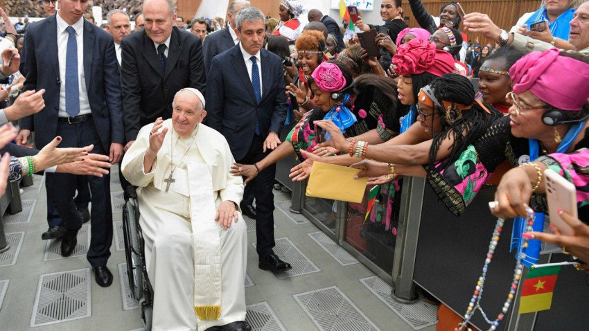Ferenc pápa hangsúlyozta: ma sürgősen meg kell találnunk a békét a világban, egy olyan békét, amely mindenekelőtt a szívben kezdődik, egy beteg szívben, amelyet a gyűlölet és a harag megosztottsága tép szét. A béke mellett a nők antropológiai identitása is veszélyben van, mivel eszközként, politikai viták és kulturális ideológiák tárgyaként használják őket, amelyek figyelmen kívül hagyják a nők teremtéskor kapott szépségét. Szükséges, hogy jobban értékeljék a nők képességét a kapcsolatteremtésre és az adományozásra, és hogy a férfiak jobban megértsék a nőktől kapott kölcsönösség gazdagságát, hogy visszaszerezzék azokat az antropológiai elemeket, amelyek az emberi identitást és ezzel együtt a nők identitását, a családban és a társadalomban betöltött szerepét jellemzik, ahol nem szűnnek meg dobogó szívek lenni. És ha tudni akarjuk, milyen az emberiség nő nélkül, milyen a férfi nő nélkül, akkor a Biblia első oldalán megtaláljuk: magányos – tette hozzá rögtönzött szavakkal Ferenc pápa, utalással a Teremtés könyvének szavaira.