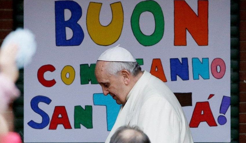 A hívek hatalmas transzparenssel köszöntötték templomuk előtt a Szentatyát 78. születésnapja alkalmából, mely december 17-ére, szerdára napra esik. A plébánia épületében a pápa a helyi oblátusok által működtetett idősek otthonát is meglátogatta: „Mi vagyunk a múlt század, és ők a jövő” – mondta nekik derűsen a pápa, utalva arra a nyolcvan házaspárból álló csoportra, akiknek a gyermekeit a Szent József-plébánián az elmúlt évben keresztelték meg. Ferenc pápa a szentmise előtt beszélgetésbe elegyedett az egyes plébániai csoportokkal. Visszaemlékezett a hetven évvel ezelőtti elsőáldozására, és elmondta, hogy miután az elsőáldozásra őt felkészítő nővér 1987. október 17-én meghalt, az elhunyt mellett imádkozott, mert ő vezette el Jézushoz.