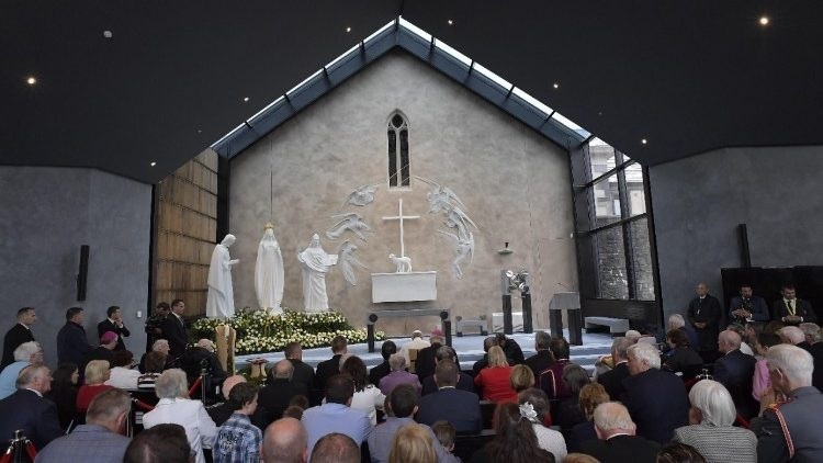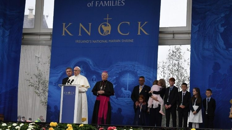 Örülök, hogy itt lehetek veletek. Örülök, hogy veletek lehetek a Szűzanya házában. Hálát adok Istennek, amiért a családok világtalálkozójához kapcsolódóan meglátogattam ezt az ír népnek oly kedves kegyhelyet. Köszönöm Neary érseknek és Gibbons plébános atyának a szívélyes fogadtatást.
