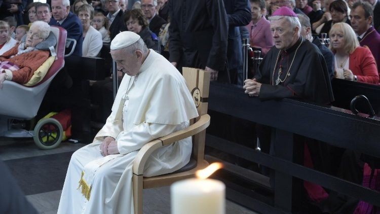 Szeretném külön is köszönteni azokat a férfiakat és nőket, akik börtönben vannak ebben az országban, és köszönetet mondani azoknak, akik közülük írtak nekem, miután megtudták, hogy Írországba jövök. Szeretném elmondani nektek, hogy közel, nagyon közel vagyok hozzátok! Biztosítalak benneteket és családtagjaitokat közelségemről és imámról. Mária, az irgalmasság anyja virrasszon felettetek, és erősítsen meg benneteket a hitben és a reményben!